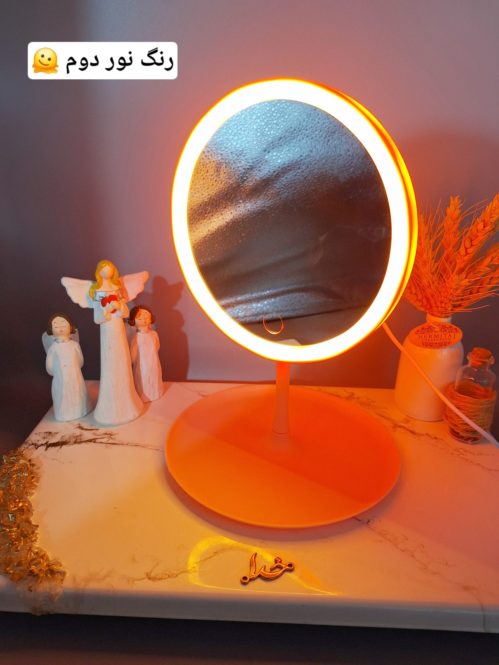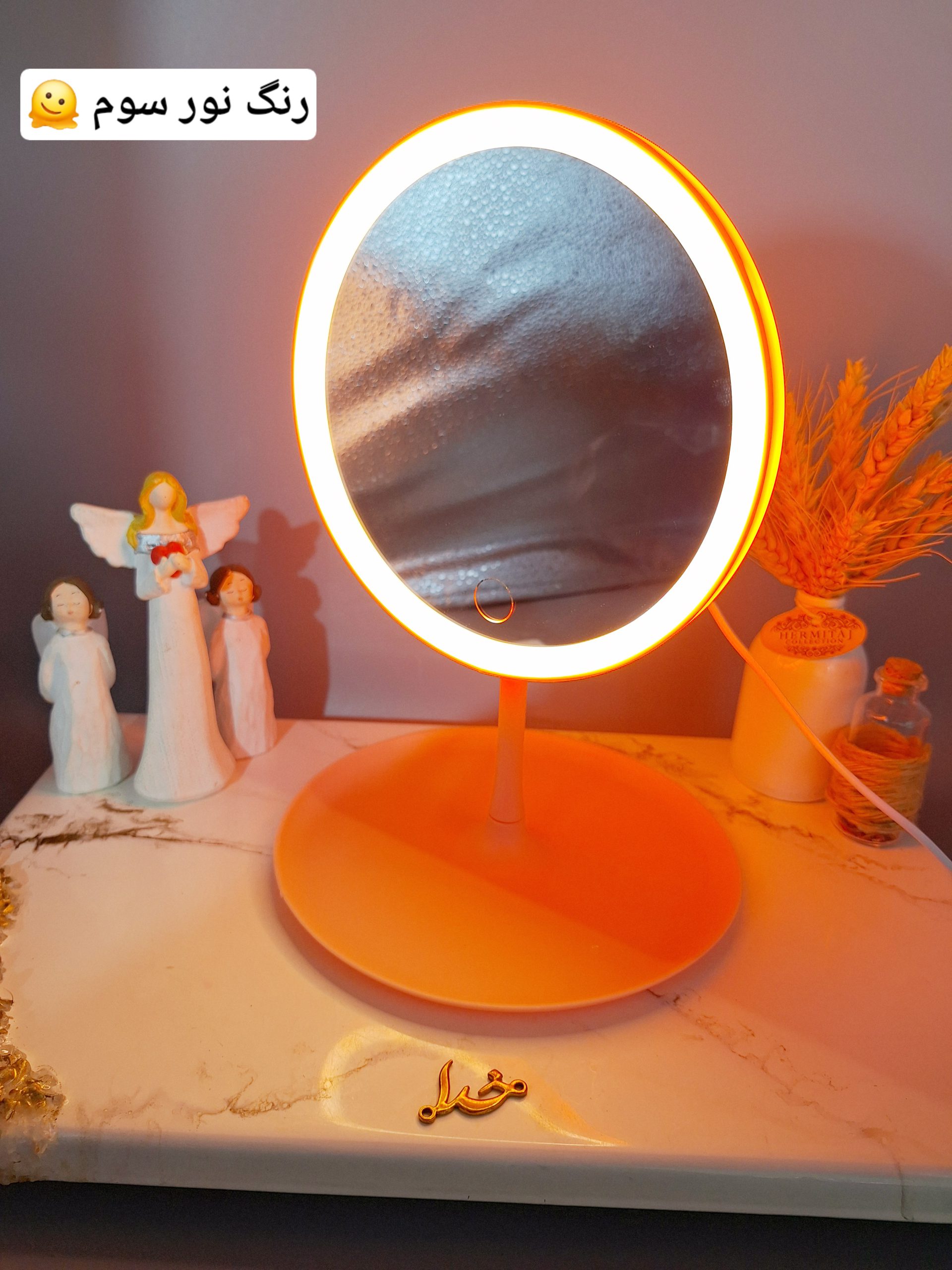 نور رینگ لایت دور اینه تغییر میکنه بالمس دست نور افتابی٫مهتابی٫میکس افتابی و مهتابی داره