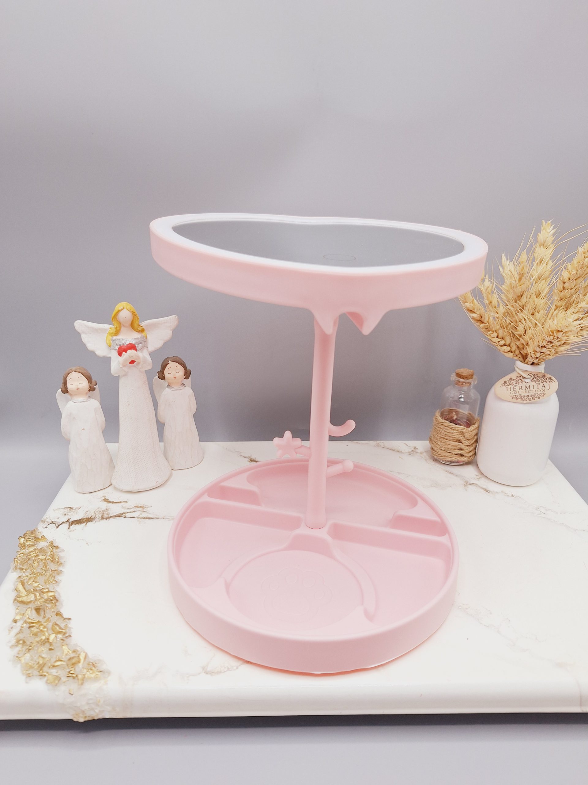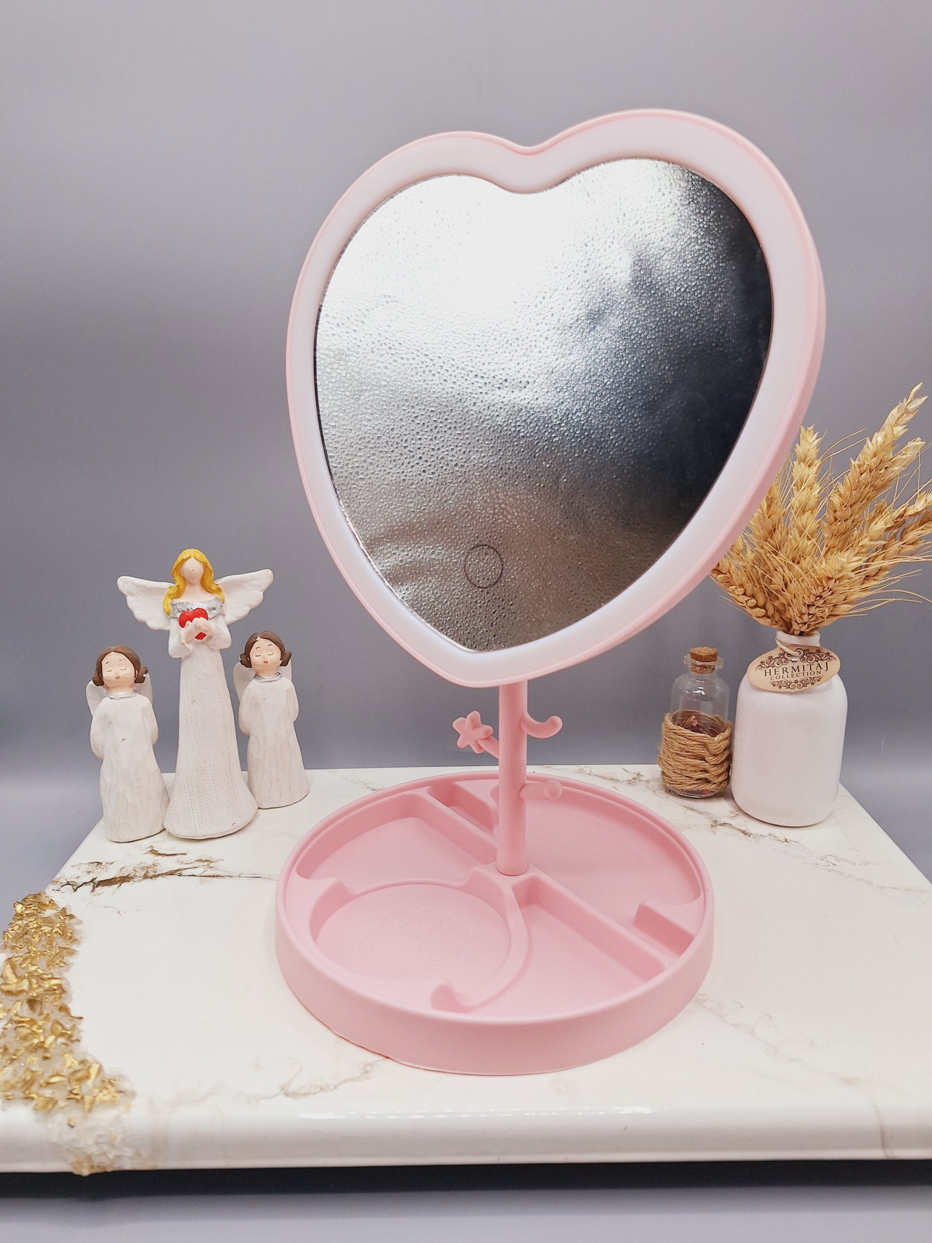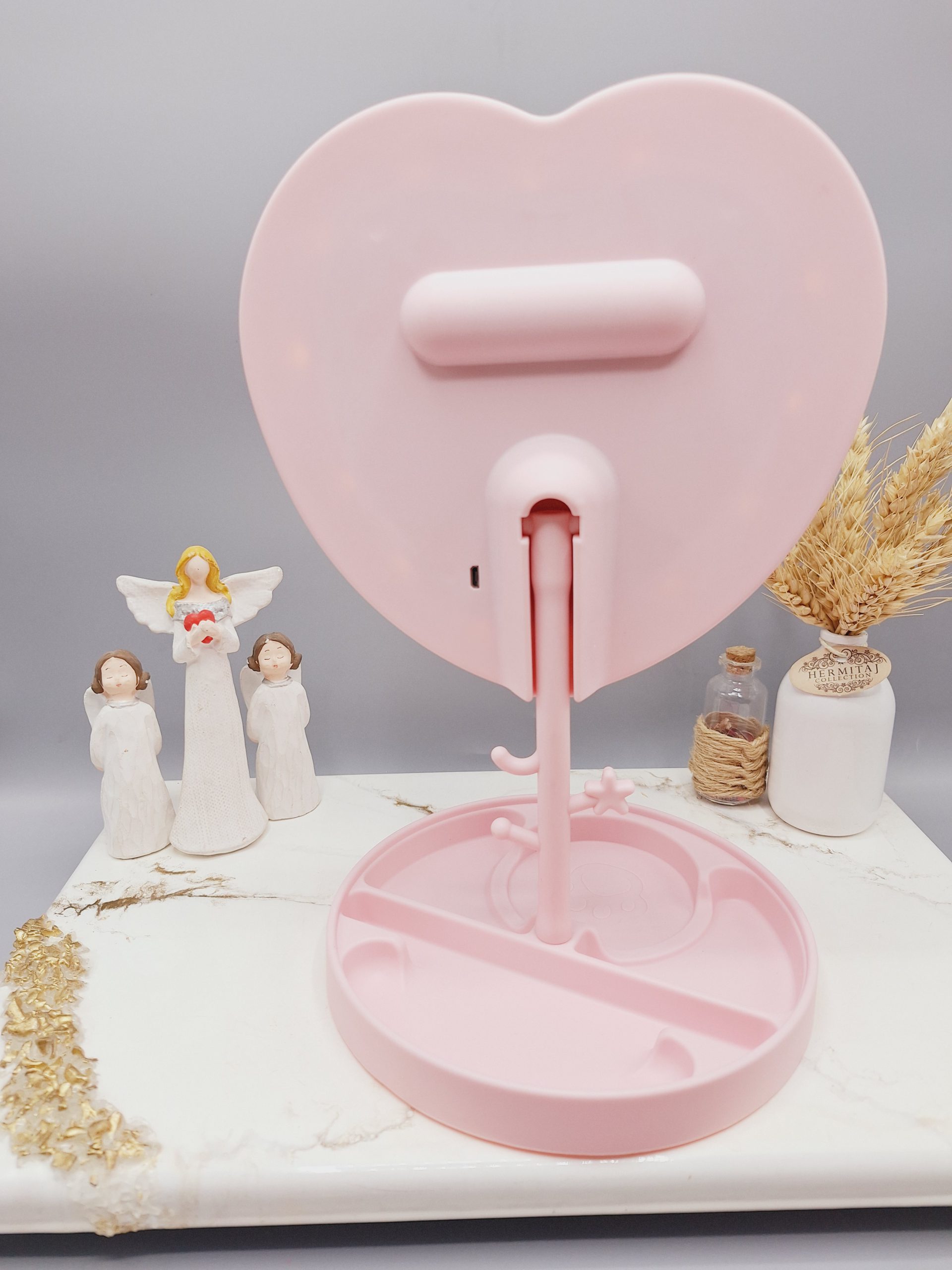 آینه رینگ لایت دار لمسی بسیار پرطرفدار مدل قلبی زیبا( رنگ صورتی )
