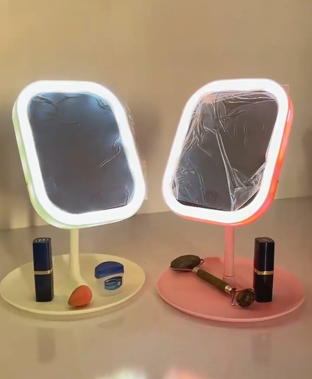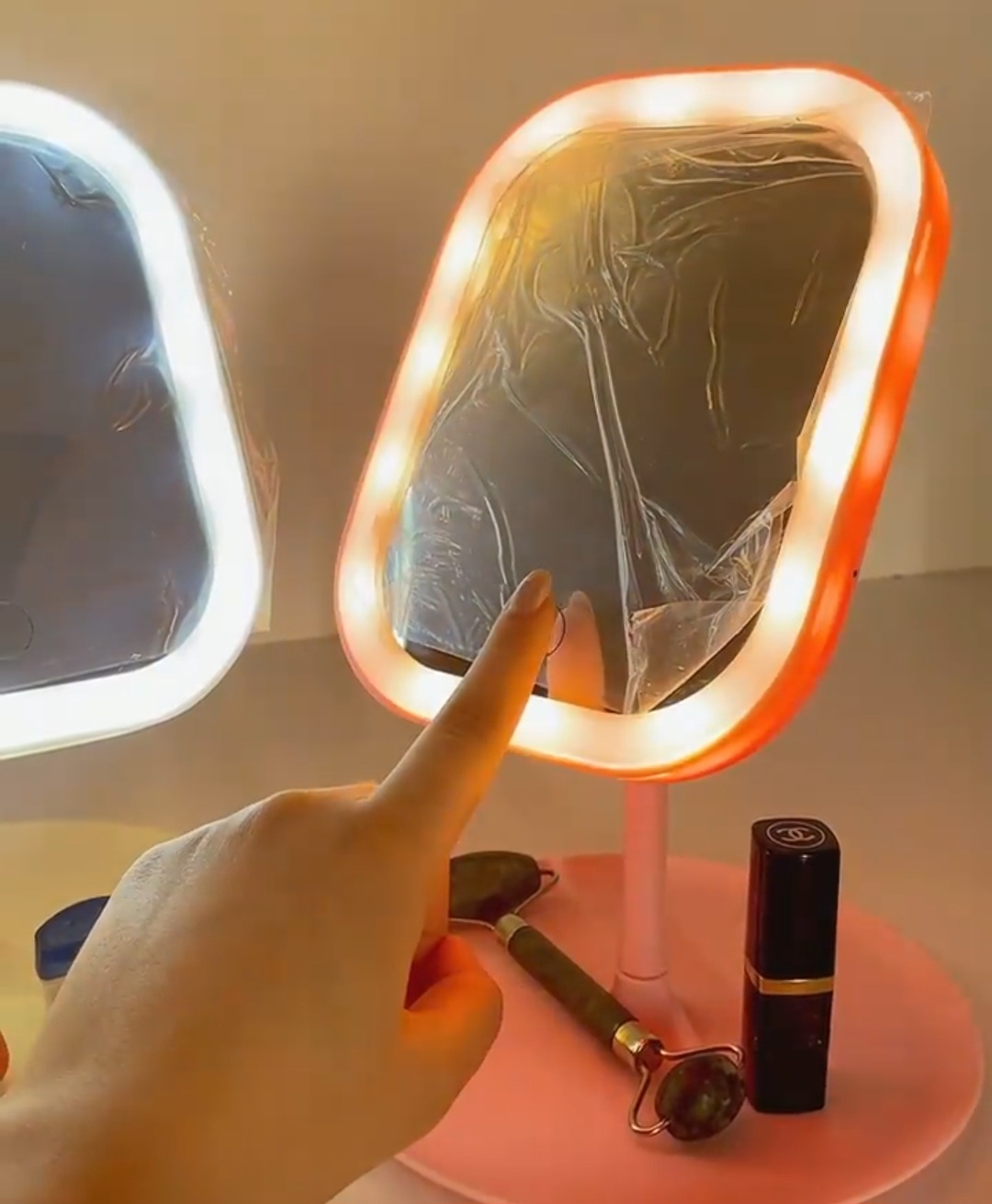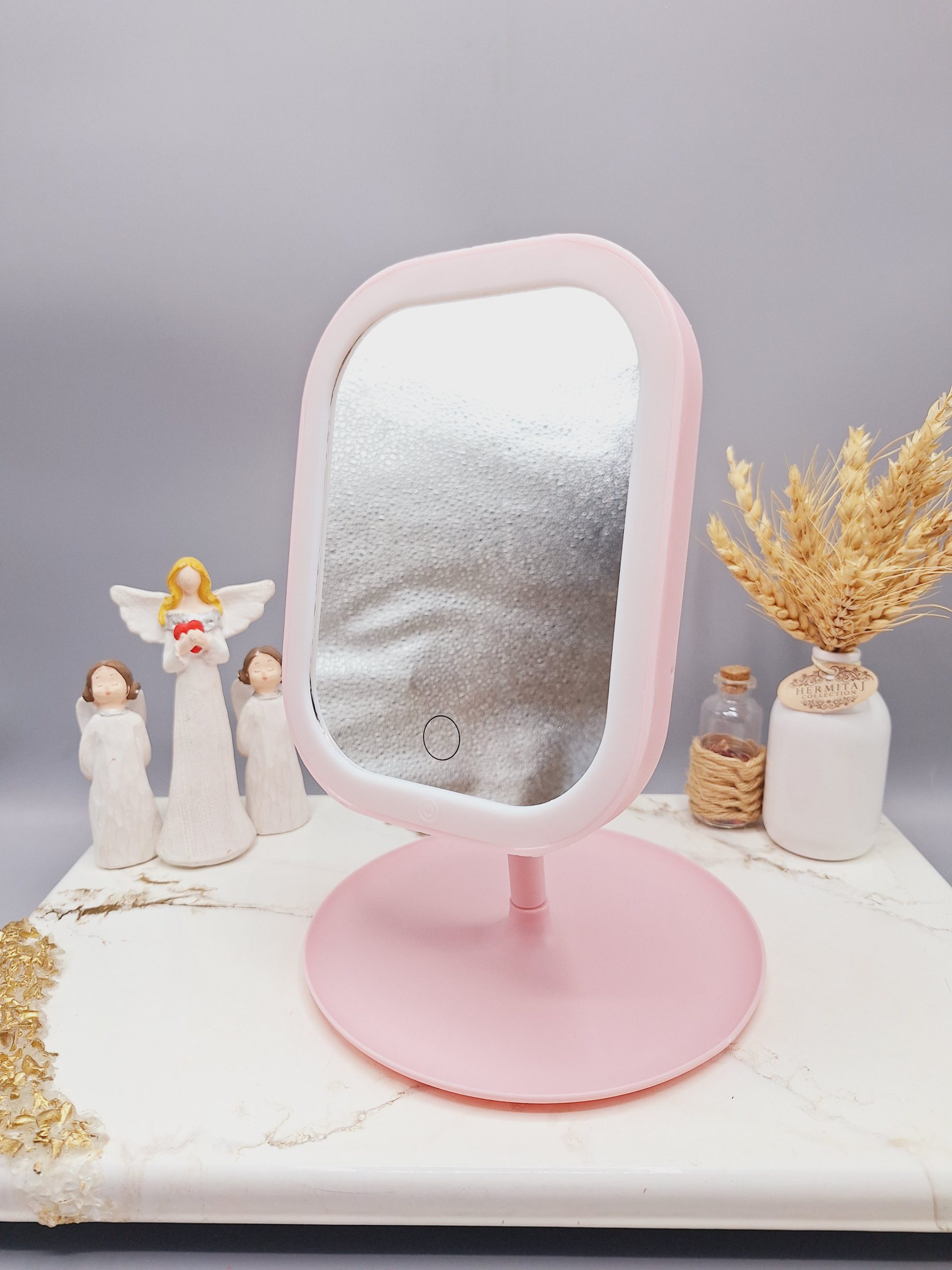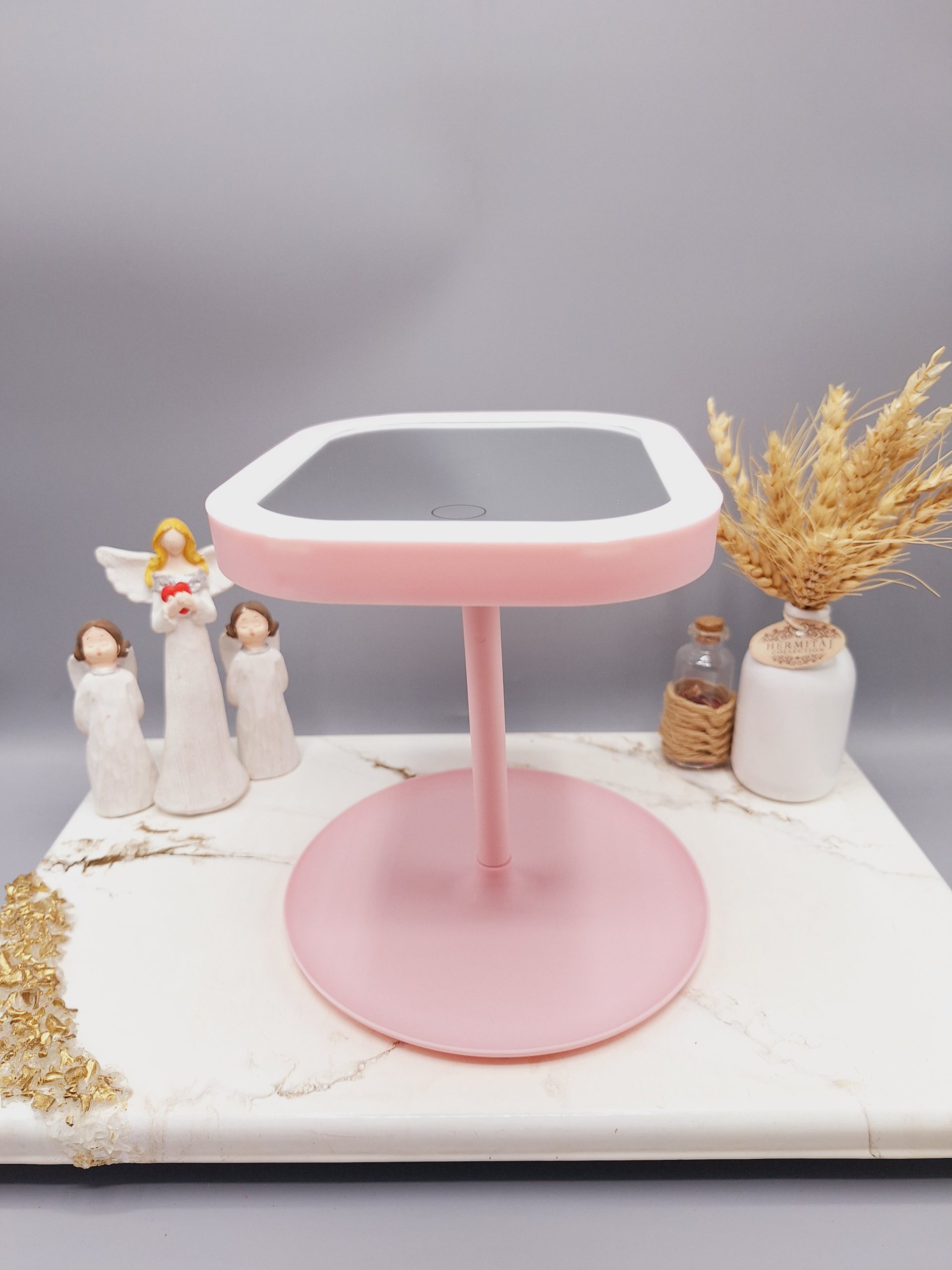 ناموجود آینه رینگ لایت دار لمسی بسیار پرطرفدار مدل مربعی زیبا( رنگ صورتی )