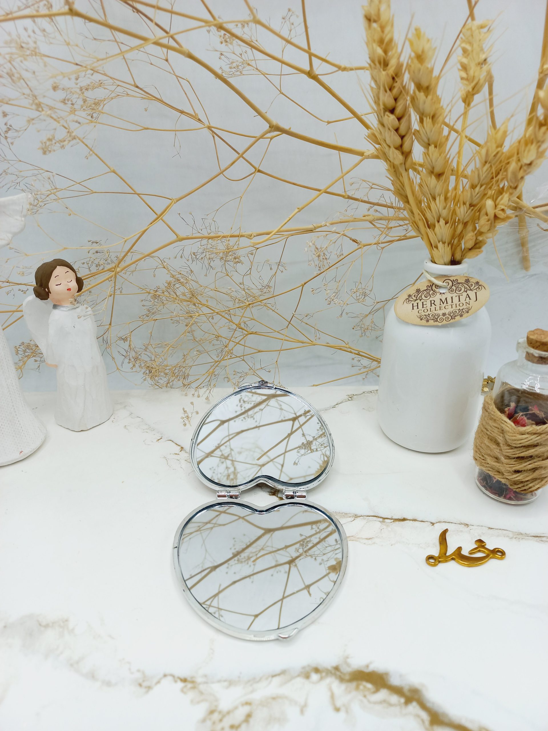 آینه فانتزی طرح قلبی با اندازهای کاملاً مناسب برای داخل کیف طراحی شده است. این آینه بسیار زیبا و جذاب می باشد