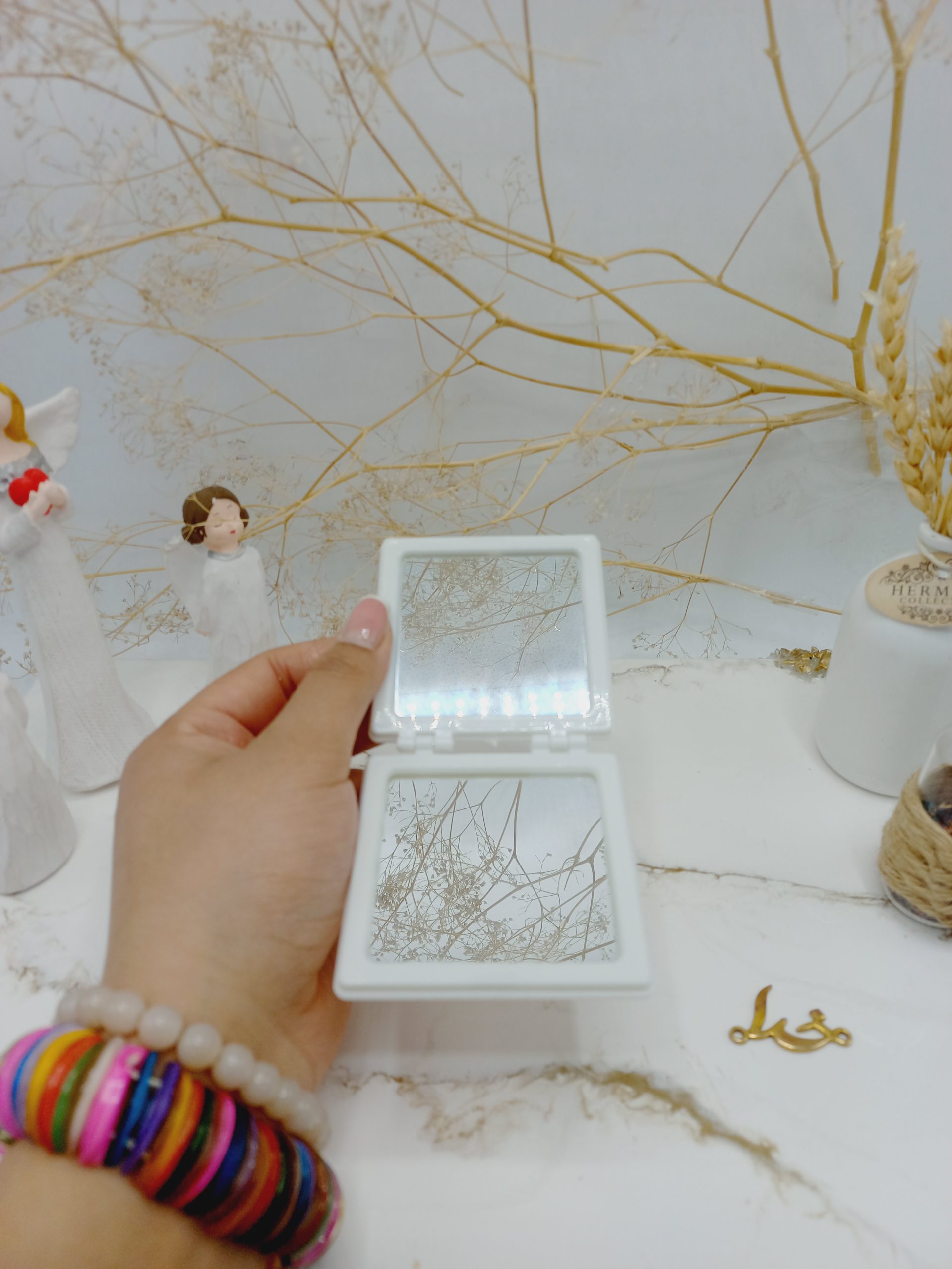 آینه فانتزی طرح چهار گوش با اندازهای کاملاً مناسب برای داخل کیف طراحی شده است. این آینه بسیار زیبا و جذاب می باشد