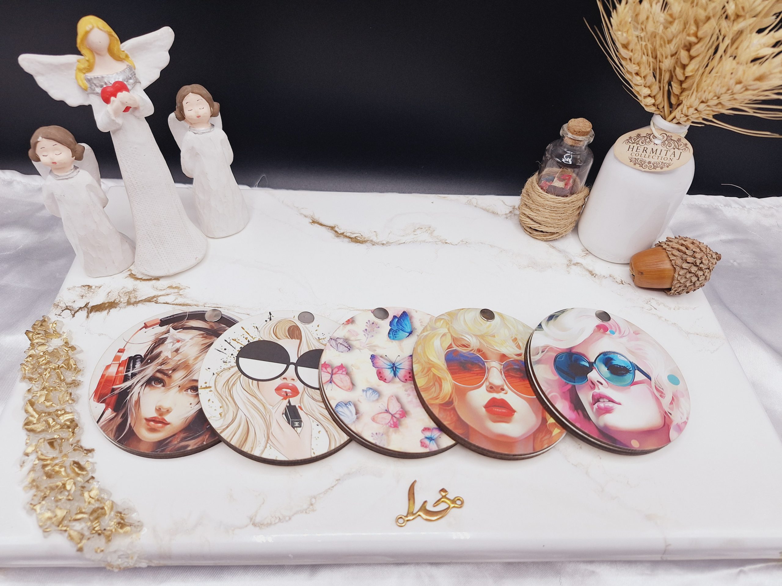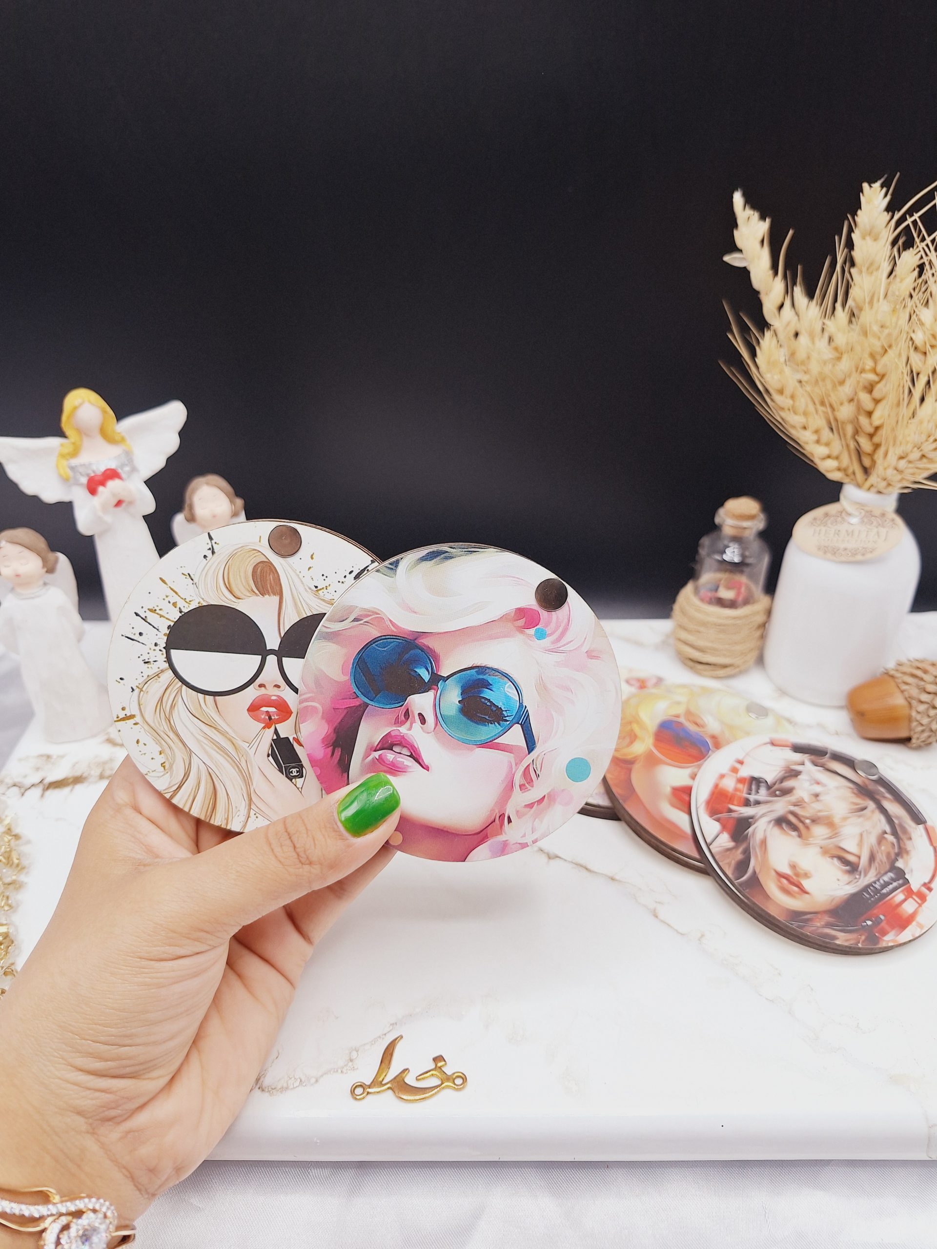 آینه چوبی دایره ای مدل دخترانه طرح سوم