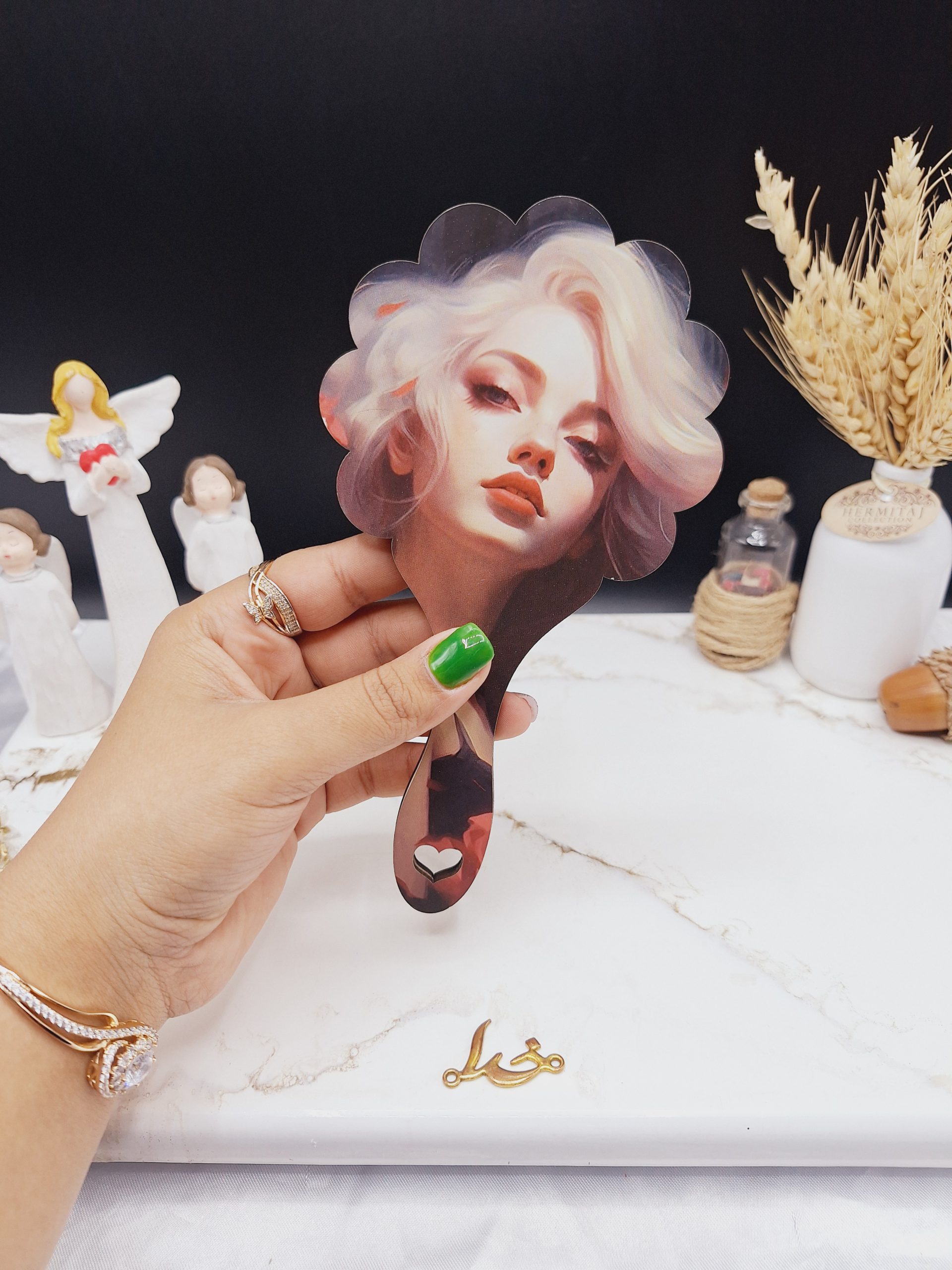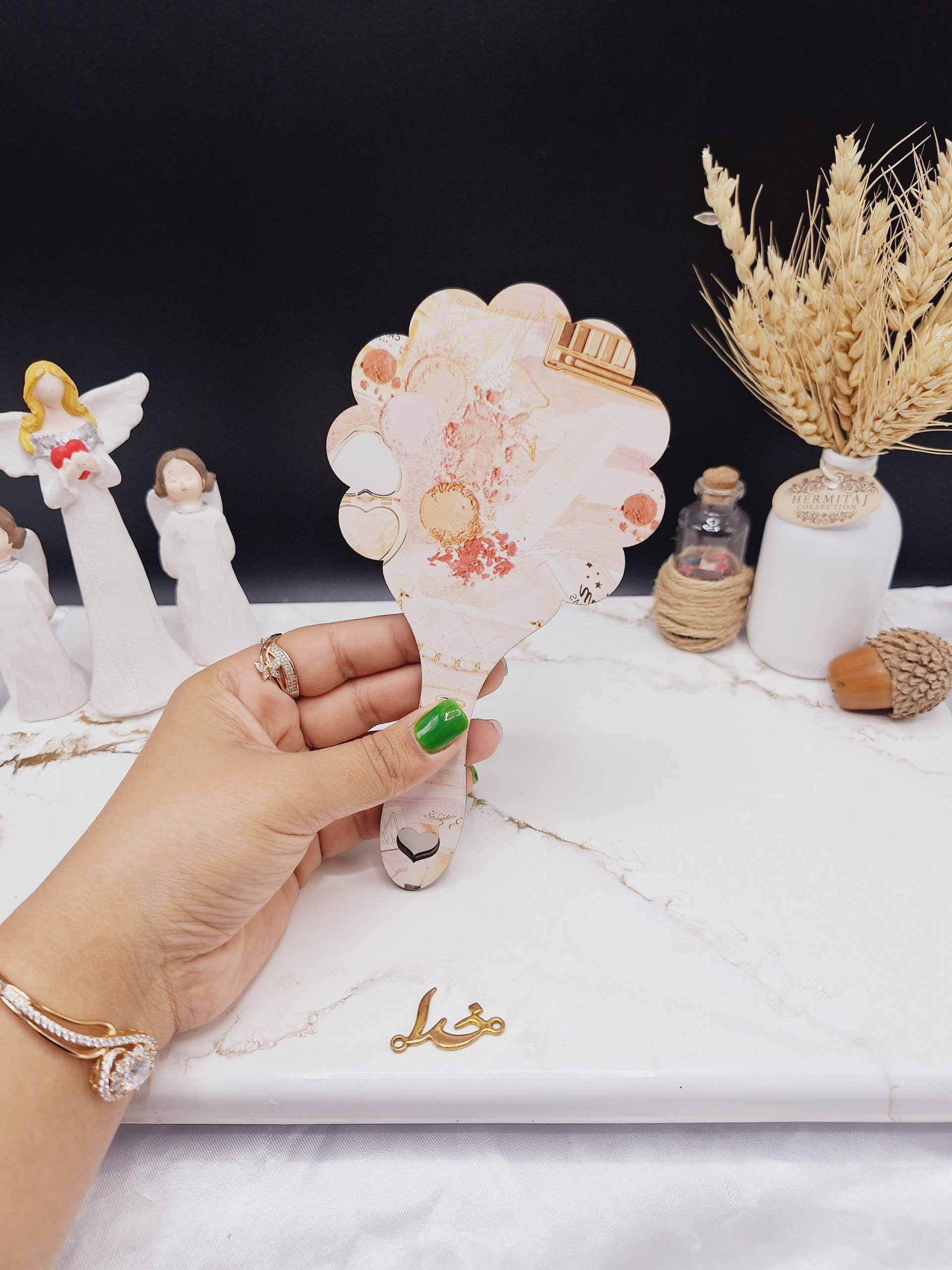 آینه چوبی دسته دار گل مدل دخترانه طرح دوم