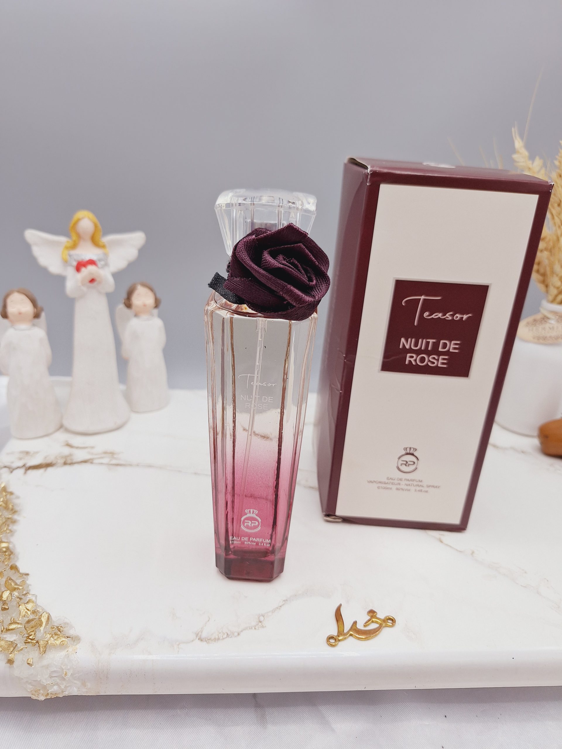 ادکلن زنانه 100 میل اماراتی برند Teasor NUIT DE ROSE کد E15M22 مشابه با رایحه لانکوم میدنایت رز می باشد. این ادو پرفیوم زنانه بوی تند و گرمی دارد و برای استفاده در فصول پاییز و زمستان پیشنهاد می شود. این عطر ادکلن جذاب با جعبه شیک و منحصر به فردی که دارد انتخاب بسیار خوبی برای دوستداران عطر و ادکلن و یا کسانی که قصد هدیه دادن به اطرافیان خود دارند به شمار میرود. این بوی دل انگیز گزینه عالی برای سخت پسندان است.