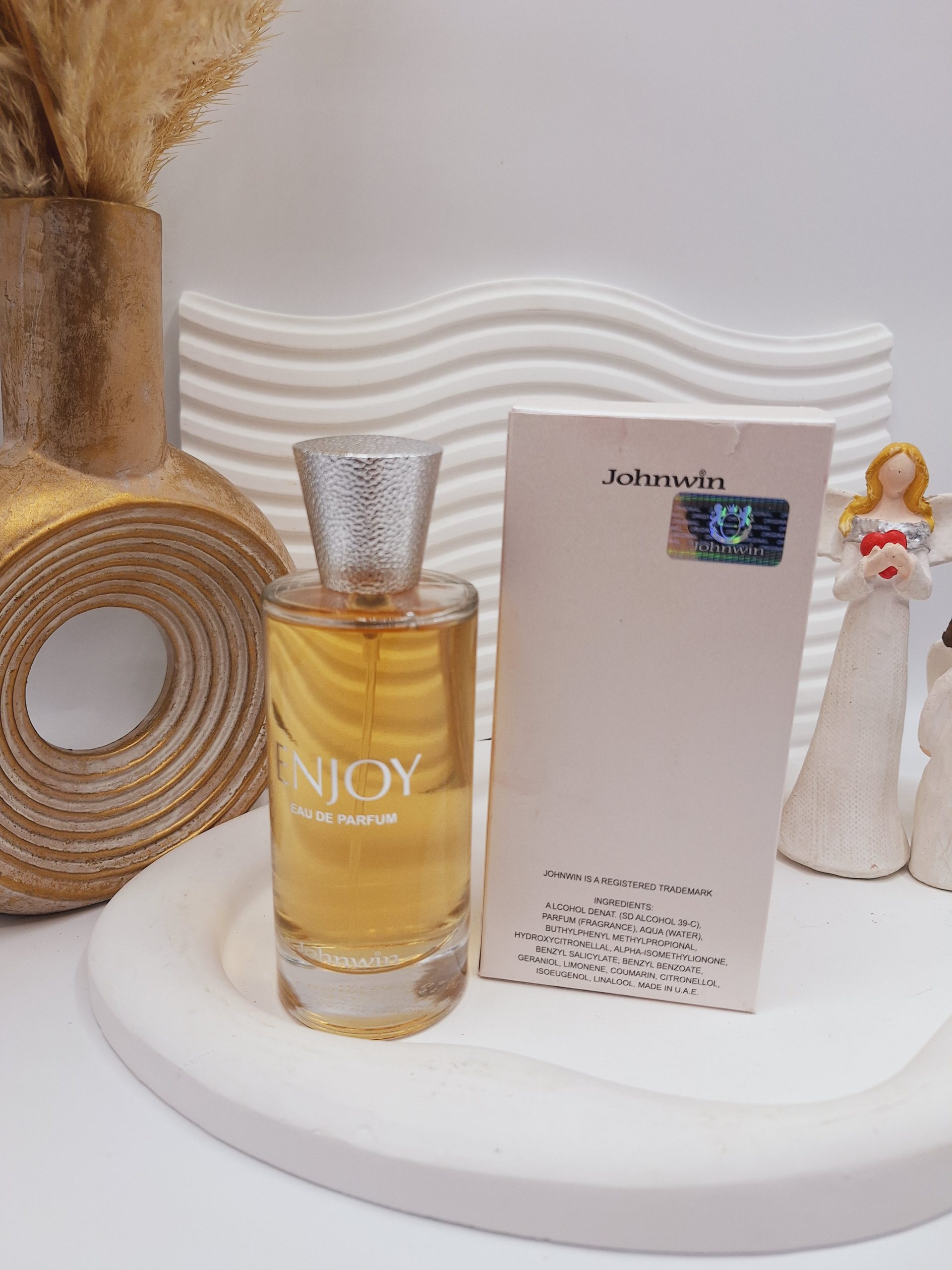 ادکلن زنانه جانوین مدل انجوی عطری است شیرین. رایحه این عطر جذاب شبیه به عطر اینجوی Enjoy از برند مشهور و فوق العاده Dior دیور میباشد. این عطر در سال 2018 به بازار عطر و ادکلن عرضه شد.عطر ادکلن دیور جوی بای دیور-Dior Joy by Dior عطری است زنانه و لاکچری. یک بطری ساده از جنس کریستال و صورتی ملایم و جواهر مانند است. در داخل درپوش آن، یک نماد ستاره شانس خانگی وجود دارد که محیط اطراف آن به سیم نقره های مزین شده است.