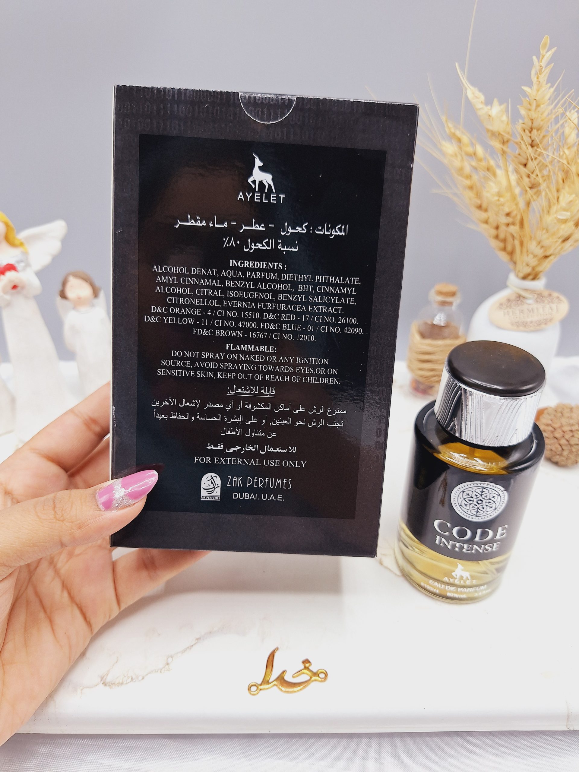 ادکلن ۱۰۰ میل CODE INTENSE کد 3600 یک عطر مردانه از خانواده عطر های چوبی معطر می باشد . پیش رایحه این محصول شگفت انگیز از آنیس ستاره ای، گریپ فروت و پرتقال ماندارین تشکیل شده در ادامه و با گذر زمان میان رایحه آن شامل دارچین ، شکوفه پرتقال ، زیره می شود؛ رایحه پایه آن نیز وانیل، دانه تونکا و چوب گوایاک است.