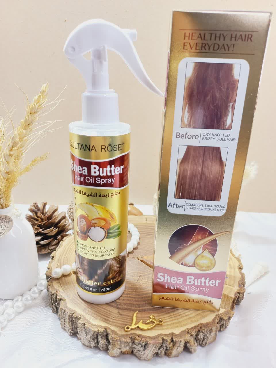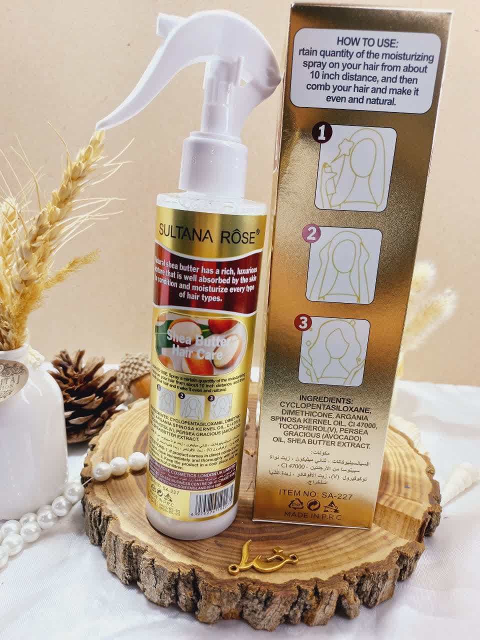اسپری دو فاز مدل کره فندق SHEA BUTTER حجم 250 میل برند سلطان رز SULTANA ROSE اصلی کد SA227 مخصوص موهای رنگ شده یک سرم کراتینه حرفه ای با خاصیت نرم کنندگی و درمان موهای آسیب دیده جهت ترمیم ساختار مو و تامین رطوبت مو می باشد. این محصول جهت درمان موهای خشک، رنگ شده و آسیب دیده و مراقبت مو به کار می رود. این محصول که به صورت اسپری طراحی شده، با داشتن مواد مغذی به عنوان ترمیمکننده، نرمکننده و محافظتکننده موهای رنگ شده شناخته شده است. با استفاده از این سرم، خیالتان بابت مراقبت از موهای رنگ شده و درمان موهای آسیب دیده راحت باشد. تمام آسیب های وارد شده بر مو توسط این سرم جبران گردیده و سلامت مو دوباره به آن باز خواهد گشت. این سرم دوفاز نه تنها تاثیر مستقیم بر سلامت مو دارد؛ بلکه روی ظاهر آن نیز اثر مثبت به جا می گذارد. موهایی درخشان و شاداب، ارمغان این محصول است.