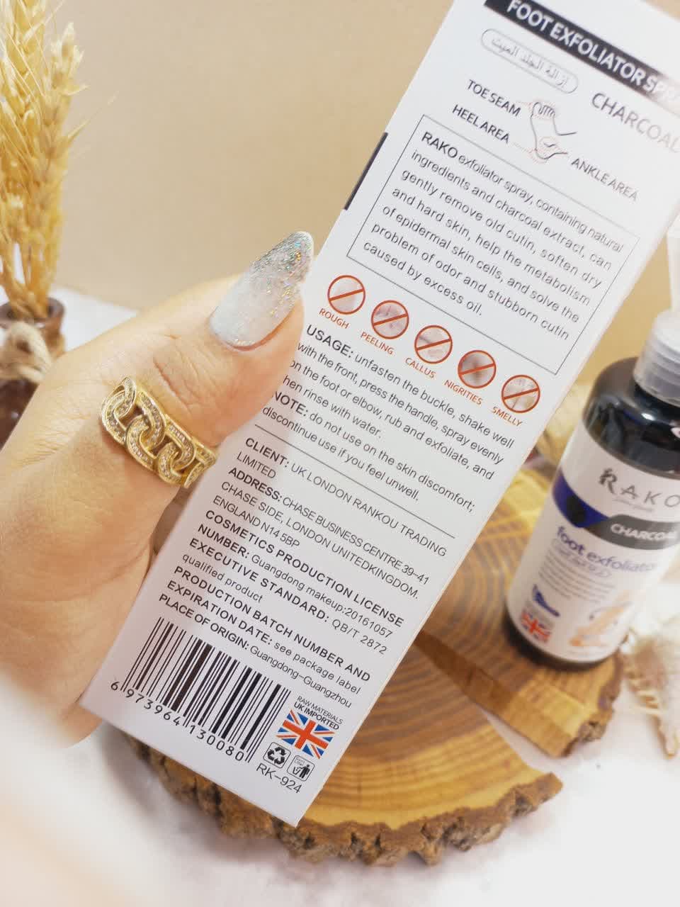 اسپری رفع ترک و خشکی پا و بدن قوی زغال چوبی CHARCOAL راکو RAKO کد RK924 اصلی