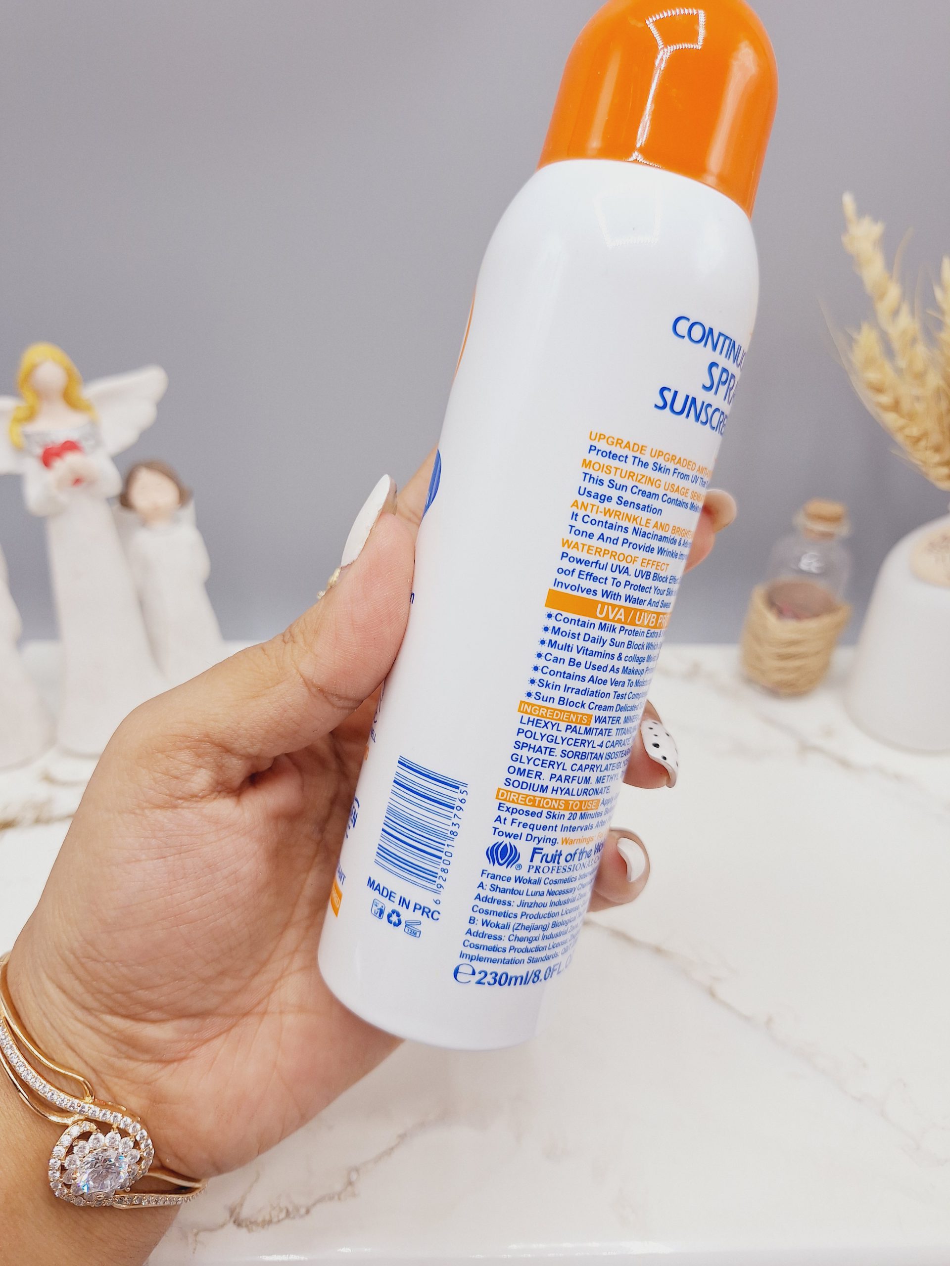 این مدل اسپری در حجم ۲۳۰ میل است و با توجه به اینکه بسیار سبک است مورد توجه آقایان و بانوان قرار گرفته است . این مدل اسپری ضدافتاب حاوی پروتئین شیر و مواد مغذی می باشد و پوست شما را در برابر پرتوهای UVB+UVA محافظت کرده و مناسب مصرف روزانه هست و همچنین فاقد چربی و ضد حساسیت می باشد