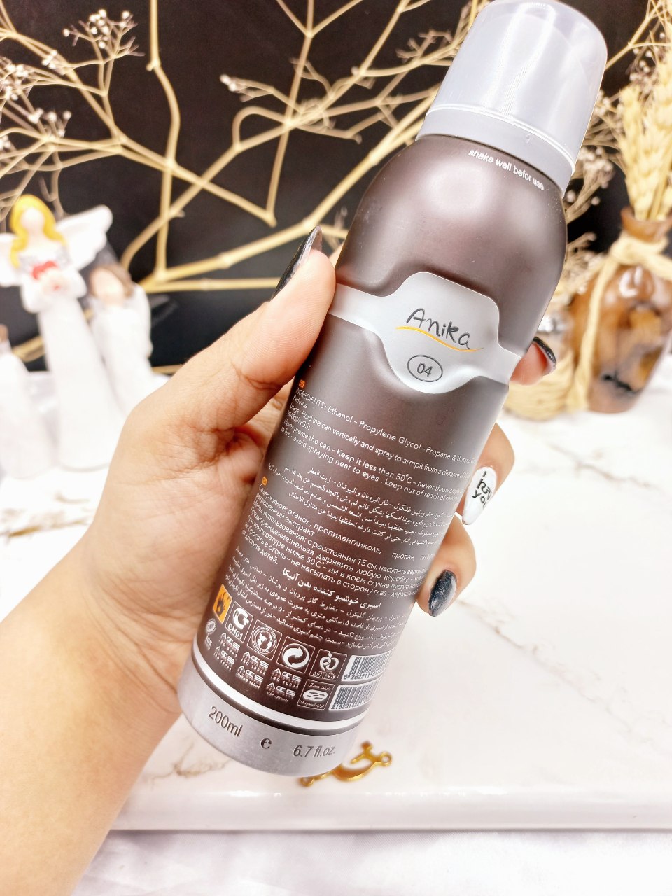 این اسپری کیفیت بالایی دارد؛ زیرا هیچگونه مواد شیمیایی برای آن استفاده نشده است؛ همچنین در ترکیبات آن روغنها، مرطوبکنندهها و ترکیبات طبیعی وجود دارند که موجب خوشبو و باطراوت شدن پوست میشوند. «آنیکا» (Anika) یک برند آرایشی بهداشتی و محصول کشور ایران است.
