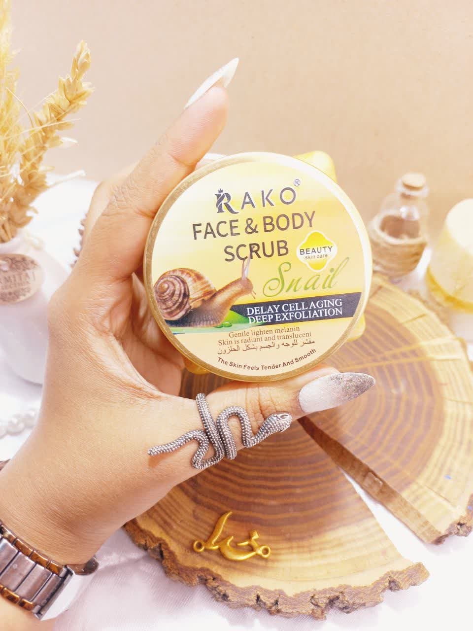 اسکراب شنی صورت و بدن رایحه حلزون راکو RAKO اصلی کد RK1029 عمل لایه برداری قوی با خواص متفاوت را روی پوست انجام میدهد، این اسکراب به دلیل حاوی بودن کلاژن برای مرطوب سازی پوست بسیار مناسب است و استفاده از آن باعث از بین بردن جوش های سرسیاه و انواع لکه های پوستی میشود، همچنین لیفتینگ قوی پوست و ضد باکتری و روشن کنندگی پوست از دیگر خواص فوق العاده آن میباشد.