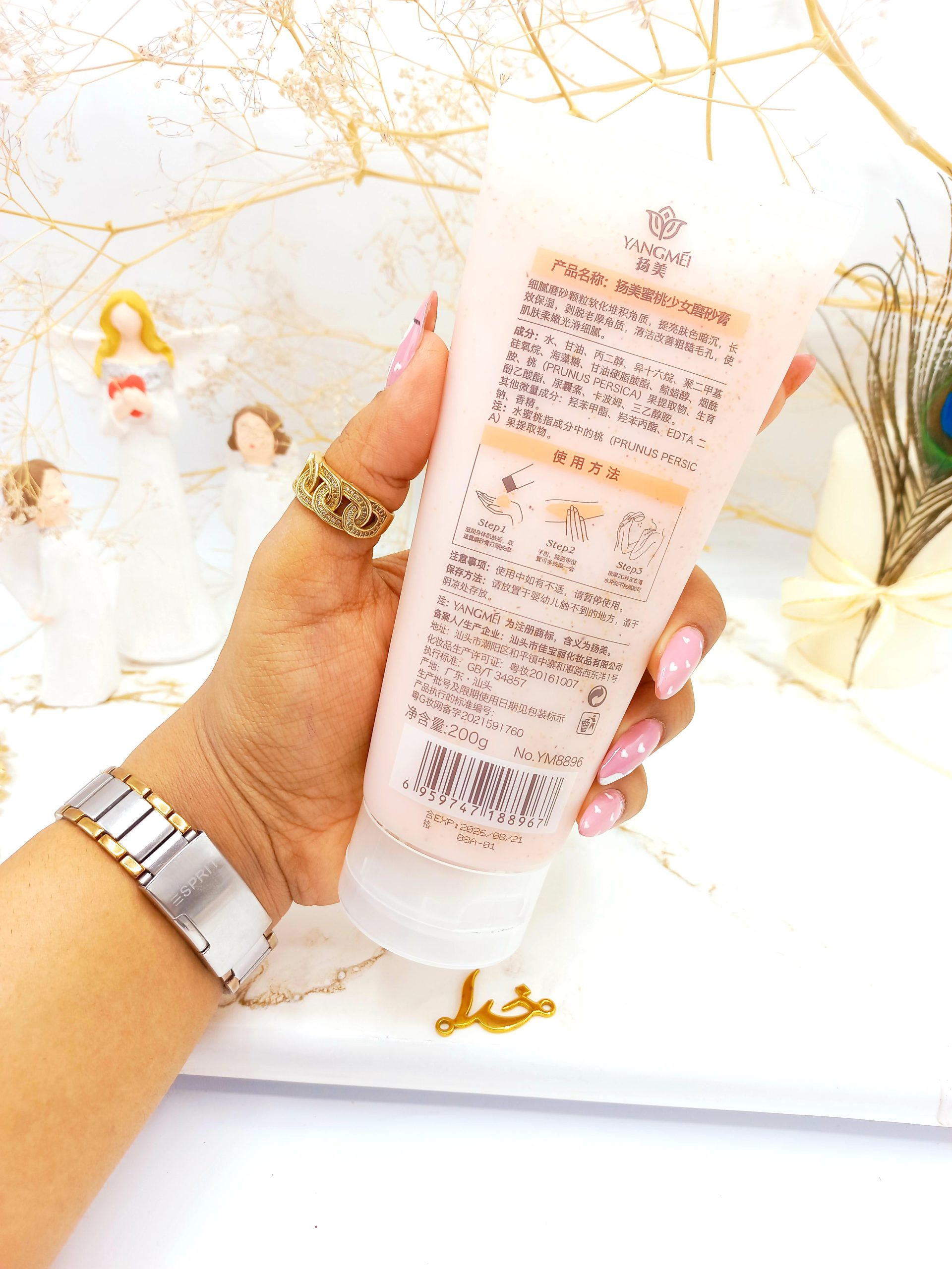 اسکراب صورت و بدن هلویی یانگمی YANGMEI حاوی عصاره هلو و نیاسین آمید در وزن 200 گرم یک لایه بردار ملایم با دانه های ریز می باشد و سبب تأمین رطوبت پوست برای طولانی مدت است.