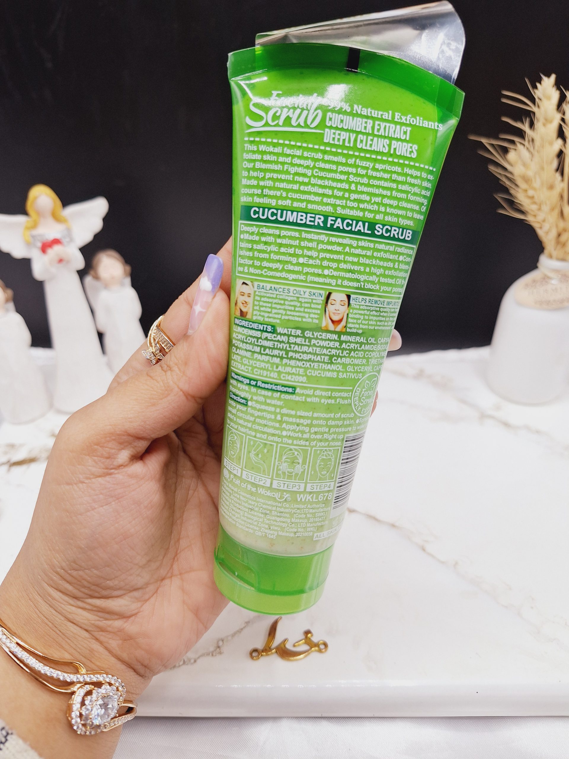 اسکراب و لایه بردار کوچک کننده منافذ رایحه خیار وکالی کد WKL678 محصولی فوق العاده برای کسانی است که به شادابی و سلامت پوست خود بسیار توجه می کنند، چون این محصول عالی چندین خاصیت درمانی را در خود دارد که باعث شفاف و نرم شدن پوست صورتتان می شود. از جمله خاصیت های اسکراب عصاره خیار می توانیم به آبرسان قوی و مرطوب کننده پوست، لایه بردار ملایم، سرشار از مواد مغذی، سفید کننده و نرم کننده اشاره کنیم. این اسکراب حالت ترکیبی دارد و چندین کار را برای پوست صورت شما انجام می دهد.  ترکیبی از مواد مختلف با دانه‌های ریز یا گرانول‌ها وجود دارد که همین دلیل بر زبری کرم می شود و البته باعث از بین بردن اضافات پوست شما نیز می شود. این اسکراب فوق العاده سرشار از خاصیت است و به زیبا تر و شاداب تر شدن پوستتان کمک بسیاری می کند. با خاصیت لایه برداری که دارد می تواند سلول های مرده پوست را از بین میبرد و باعث رشد سلول های تازه شود و این کار باعث درخشندگی بیشتر در صورت شما می شود و البته در سفید تر شدن پوستتان نیز تاثیر زیادی دارد.