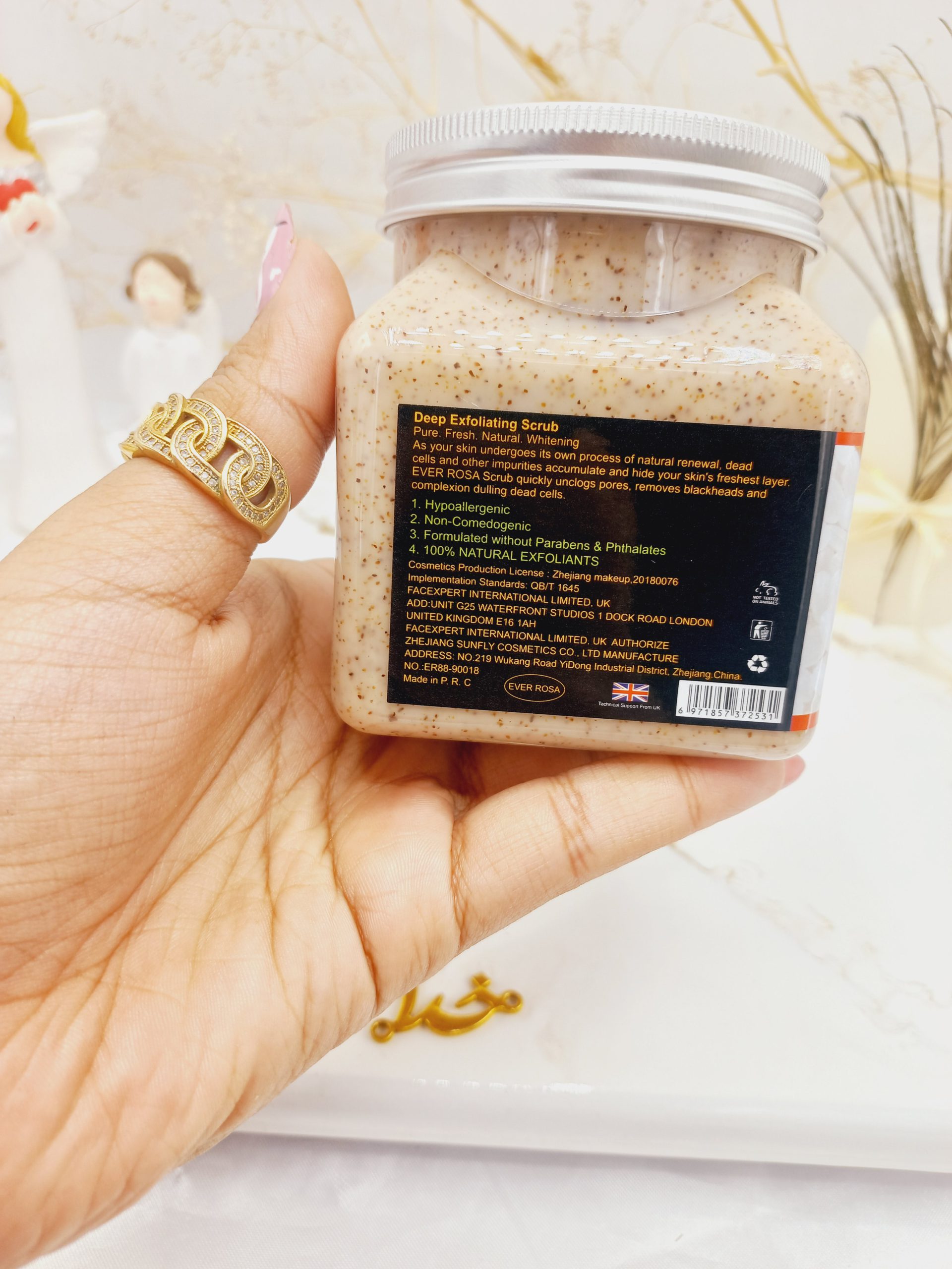 ویژگی های اسکراب پرطرفدار 350 میل شنی صورت و بدن رایحه برنج ایور روزا EVER ROSA اصلی کد ER90018