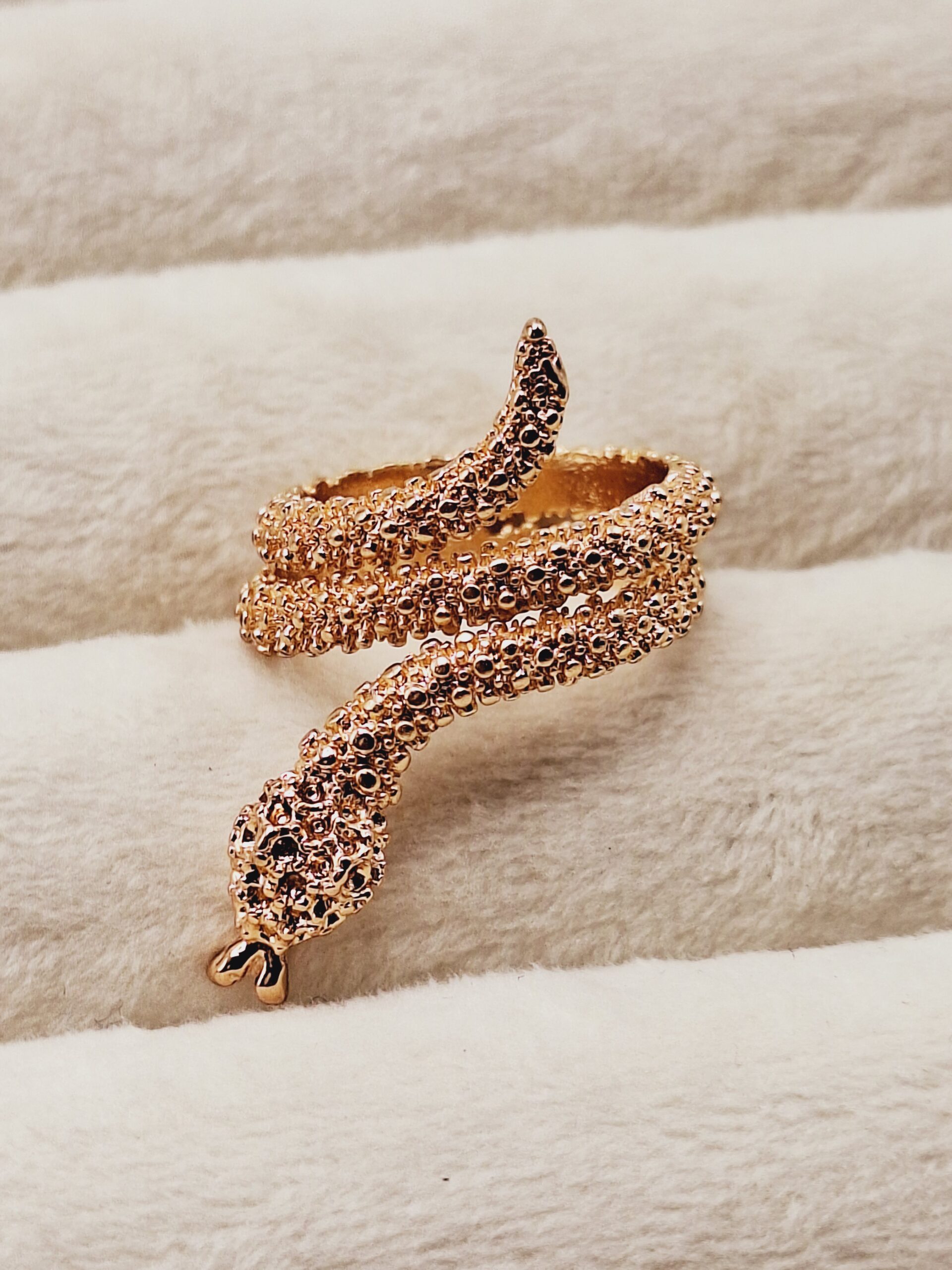 این انگشتر با طراحی برجسته مار طلایی جلوهای منحصر به فرد و مدرن به دست شما میبخشد. رنگ طلایی براق و جزئیات برجسته، ترکیبی لوکس و چشمگیر ایجاد میکنه 🎉🎁