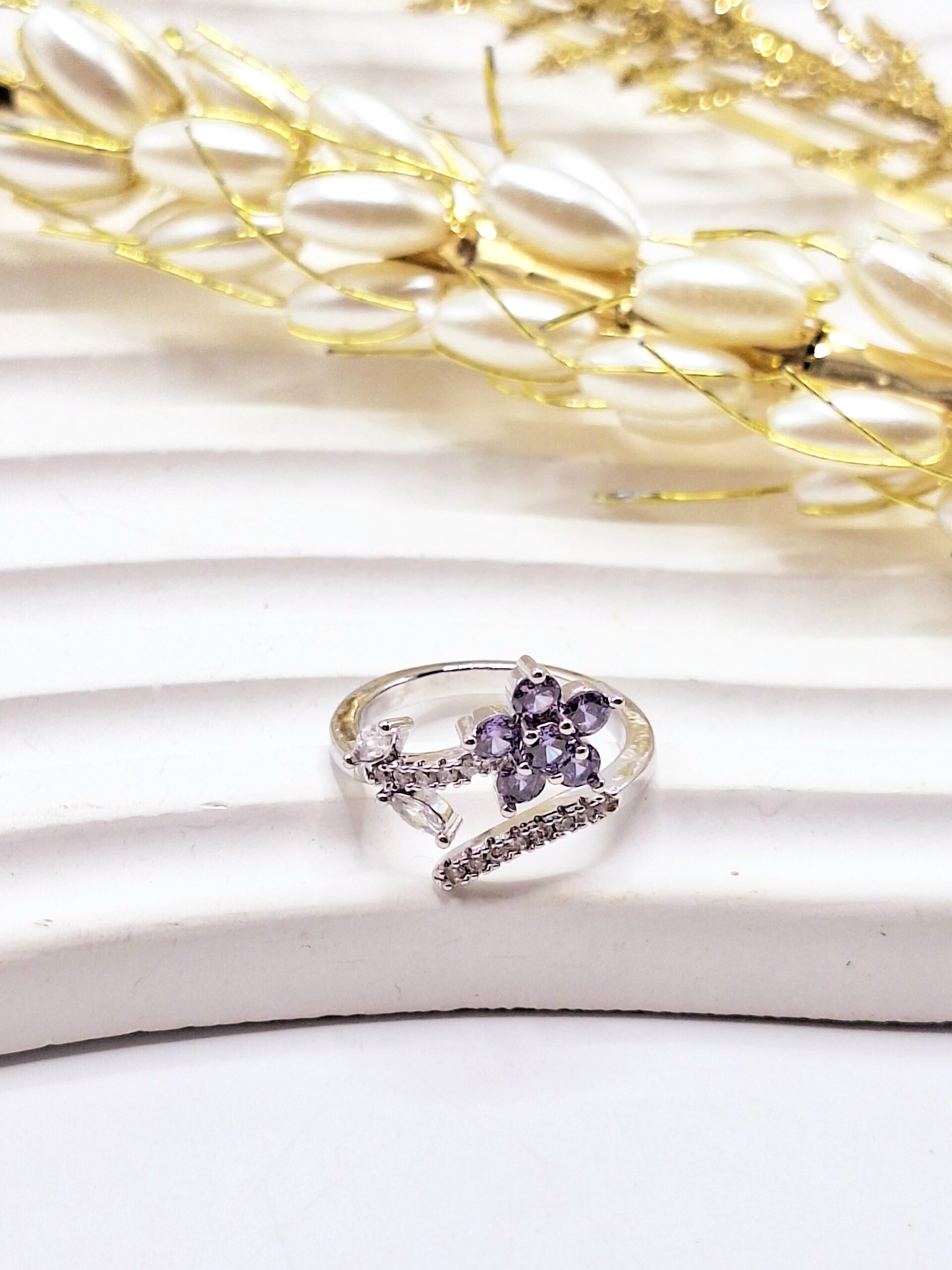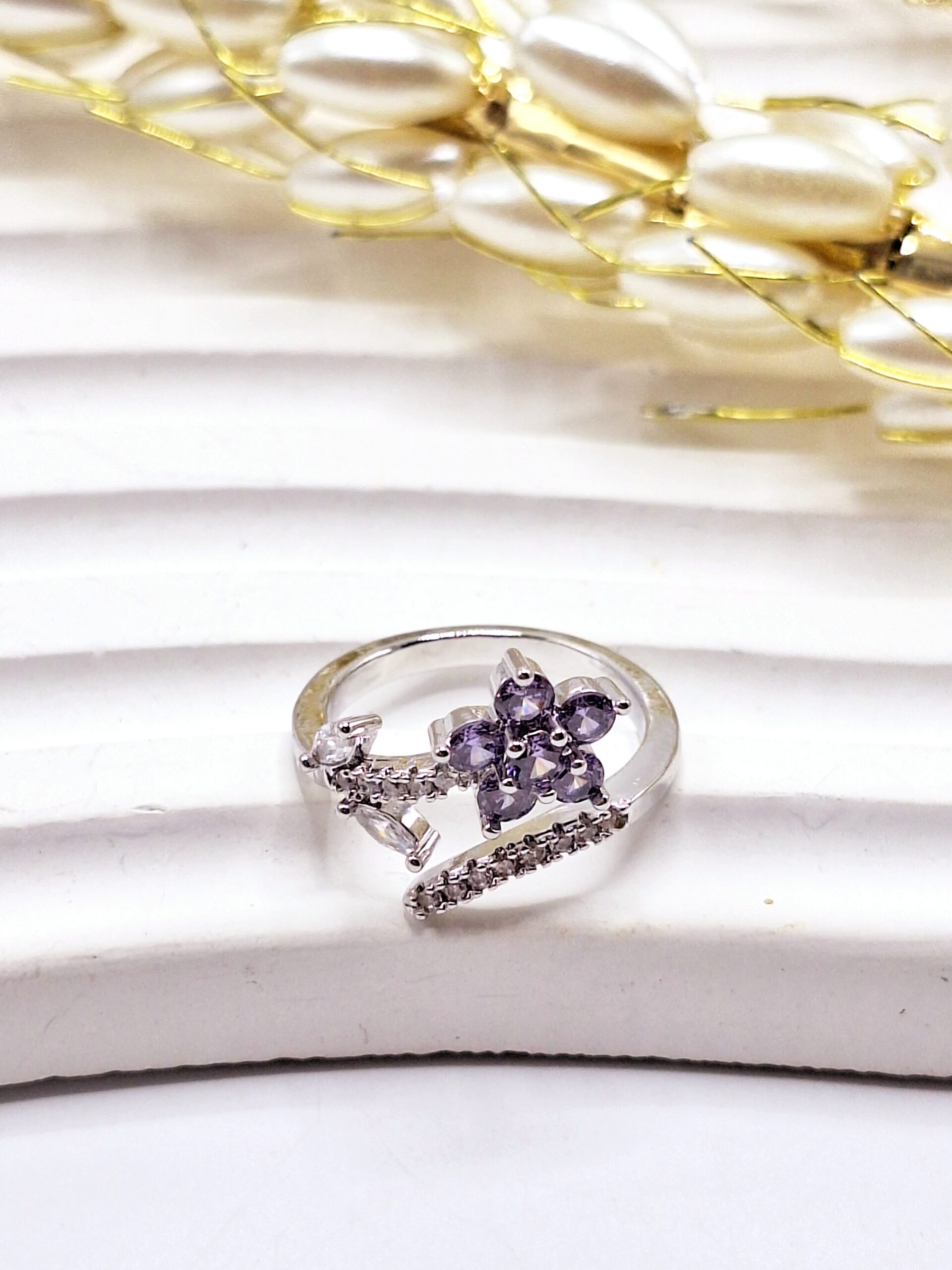 انگشتر جواهری گل بنفش ✨ یه انتخاب خاص و پر از انرژی مثبت برای دختراییه که عاشق اکسسوریهای رمانتیک و الهام گرفته از طبیعت هستن 🌸💖. طراحی گل با نگینهای بنفش درخشان، حس لطافت، عشق و تازگی رو به استایلت هدیه میده.