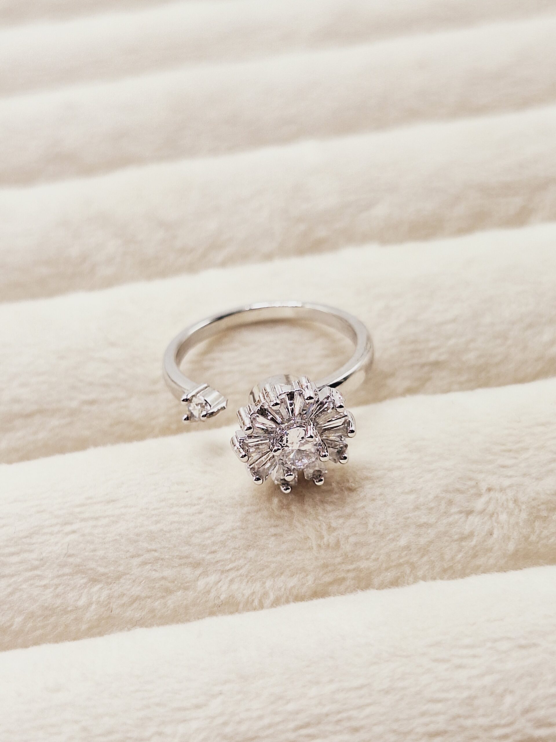 اگه دنبال یه انگشتر شیک، فانتزی و متفاوت هستی، انگشتر جواهری طرح گل اسپینری (چرخان) فری سایز مدل جدید دقیقاً همون انتخابیه که استایل تو رو خاص و جذاب میکنه ✨💖🌸💎