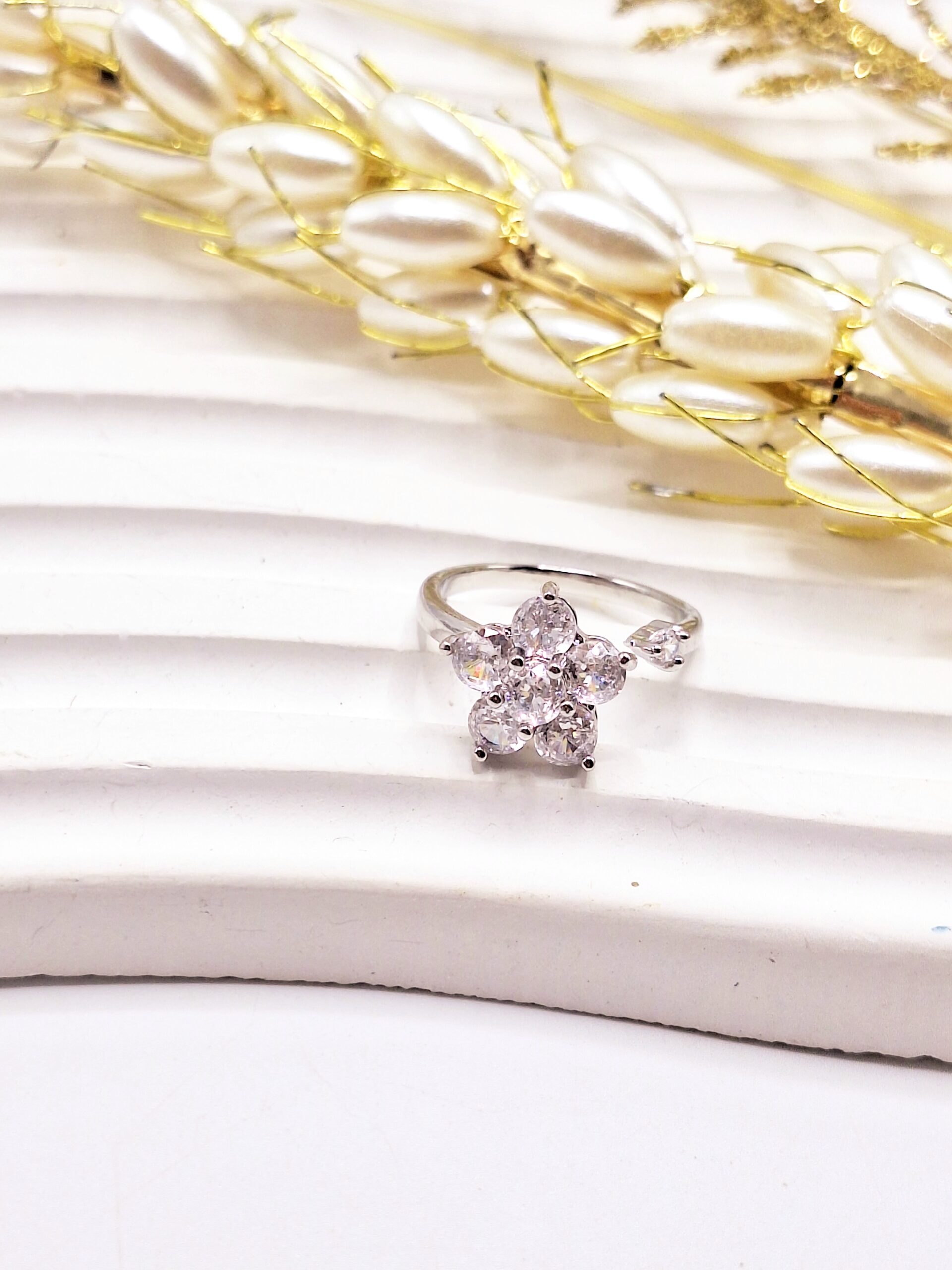 انگشتر جواهری طرح گل اسپینری ✨ از اون مدلهای خاصیه که نهتنها ظاهری شیک و نگیندار داره، بلکه بخش گل اون قابلیت چرخش داره و باعث شده یه حس متفاوت و جذاب به انگشتت بده 🌸. الهام گرفته از گلهای ظریف و درخشان طبیعت، این انگشتر نماد شکوفایی و زیباییه و برای دخترایی که دنبال اکسسوری خاص و متفاوت هستن بهترین انتخابه 🥹💖.