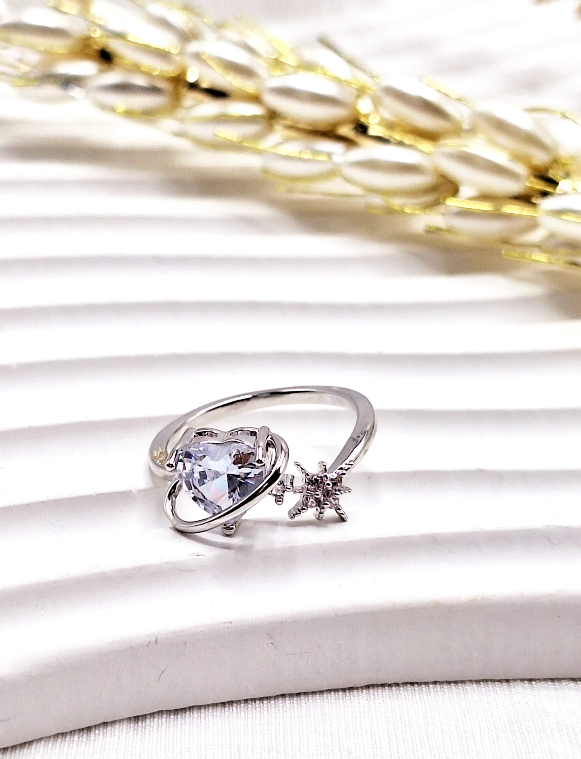 انگشتر پینترستی طرح قلب نقره ای و سیارات