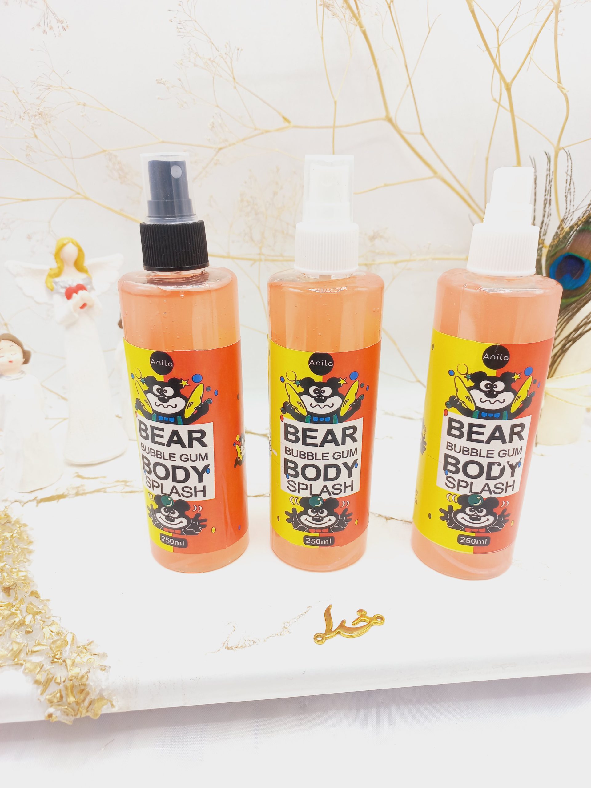 بادی اسپلش زنانه مدل آدامس خرسی در حجم 250 میلی لیتر تولید و عرضه شده است. این محصول دارای شاین بوده و بعد از اسپری روی بدن درخشندگی جذابی ایجاد می کند.