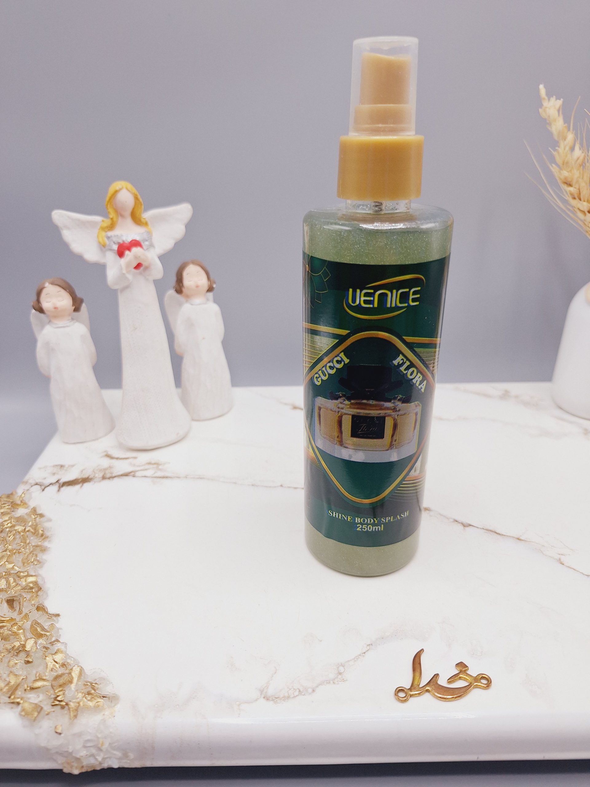 بادی اسپلش شاین دار ادکلنی سایز بزرگ ونیز VENICE رایحه GUCCI FLORA دارای رایحه شیرین و گرم است که از جمله روایح بسیار محبوب برای خانم های خوش سلیقه می باشد. این بادی اسپلش شاین دار ادکلنی سایز بزرگ ونیز VENICE رایحه GUCCI FLORA برگرفته از عطر معروف و شناخته شده Gucci flora می باشد که علاوه بر ضد تعریق بودن و خوشبو کردن بدن، تاثیر بسزایی در رطوبت رسانی و نرم کنندگی پوست بدن دارد. بادی اسپلش شاین دار ادکلنی سایز بزرگ ونیز VENICE رایحه GUCCI FLORA به صورت مایع بر روی بدن اسپری می شود و به دلیل عدم استفاده از گاز و استفاده از مواد اولیه طبیعی در تولید این محصول ، هیچ خاصیت حساسیت زایی ندارد .