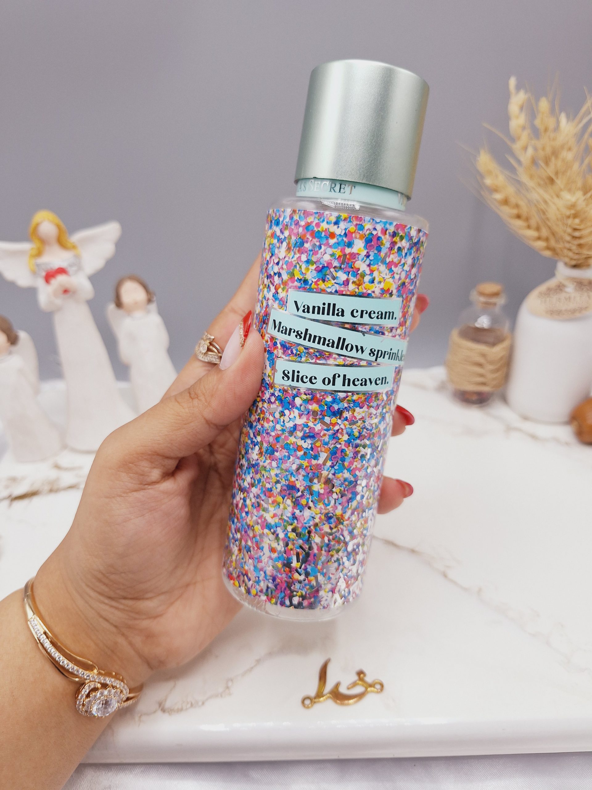 بادی اسپلش مدل cake confetti حجم 250 میل برند ویکتوریا سکرت محصولی ویژه برای بانوانی است که به سلامت و خوشبو شدن بدن خود اهمیت میدهند. بادی اسپلش های ویکتوریا سکرت با رایحه ملایم و دوست داشتنی که دارند حس تازگی و شادابی را به شما القا میکند و باعث سردرد و دلزدگی شما نخواهد شد. عصاره آلوورا و بابونه بکار رفته در ترکیبات این بادی اسپلش باعث تسکین پوست و حفظ رطوبت پوست میشود، بنابراین به هیچ عنوان باعث حساسیت و تحریک پوستی نمیشود .همچنین وجود ذرات گلیتری و براق در فرمولاسیون آن, روی پوست شما درخشندگی و زیبایی ایجاد میکند.