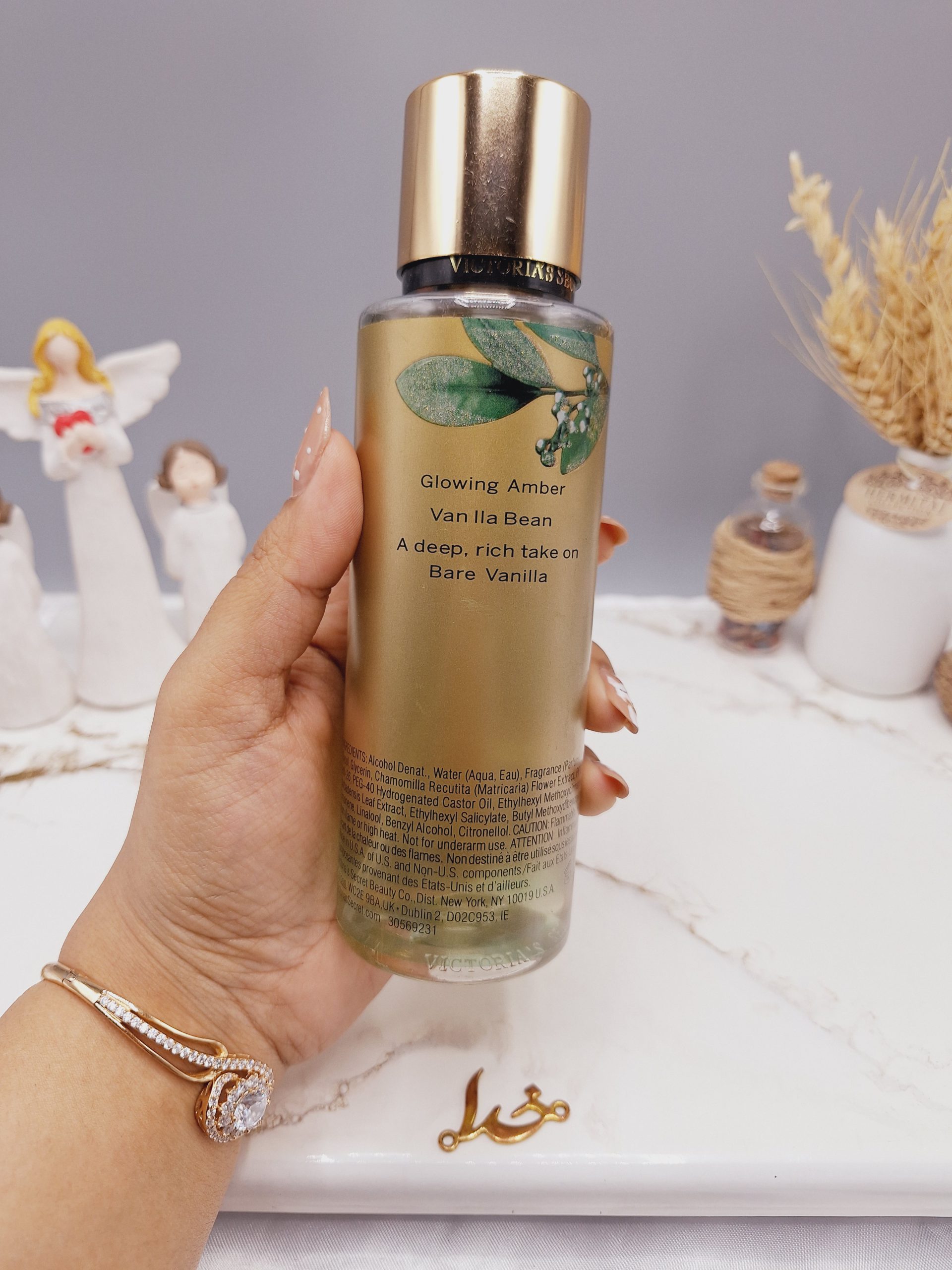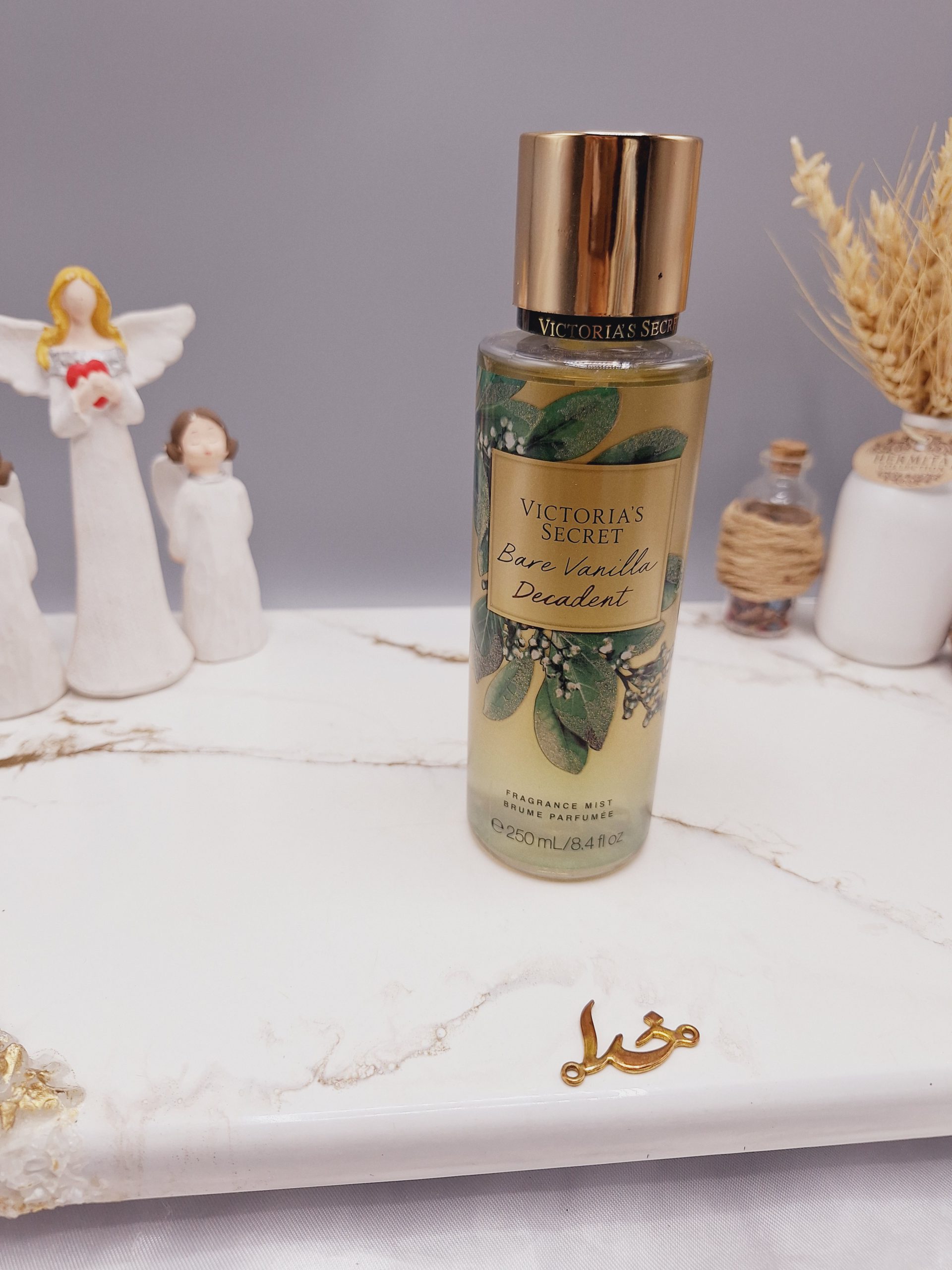 بادی اسپلش ویکتوریا سکرت Bare Vanilla Decadent محصولی با کیفیت از خانه مد ویکتوریا سکرت بوده و دارای رایحه گرم و وانیلی است. این بادی اسپلش دارای نت های کهربای درخشان و رایحه وانیل عمیق می باشد. در فرمولاسیون بادی میست ویکتوریا سکرت از آلوئه ورا و بابونه استفاده شده که خاصیت تسکین دهندگی پوست را دارد و باعث شادابی و طراوت پوست می‌گردد.