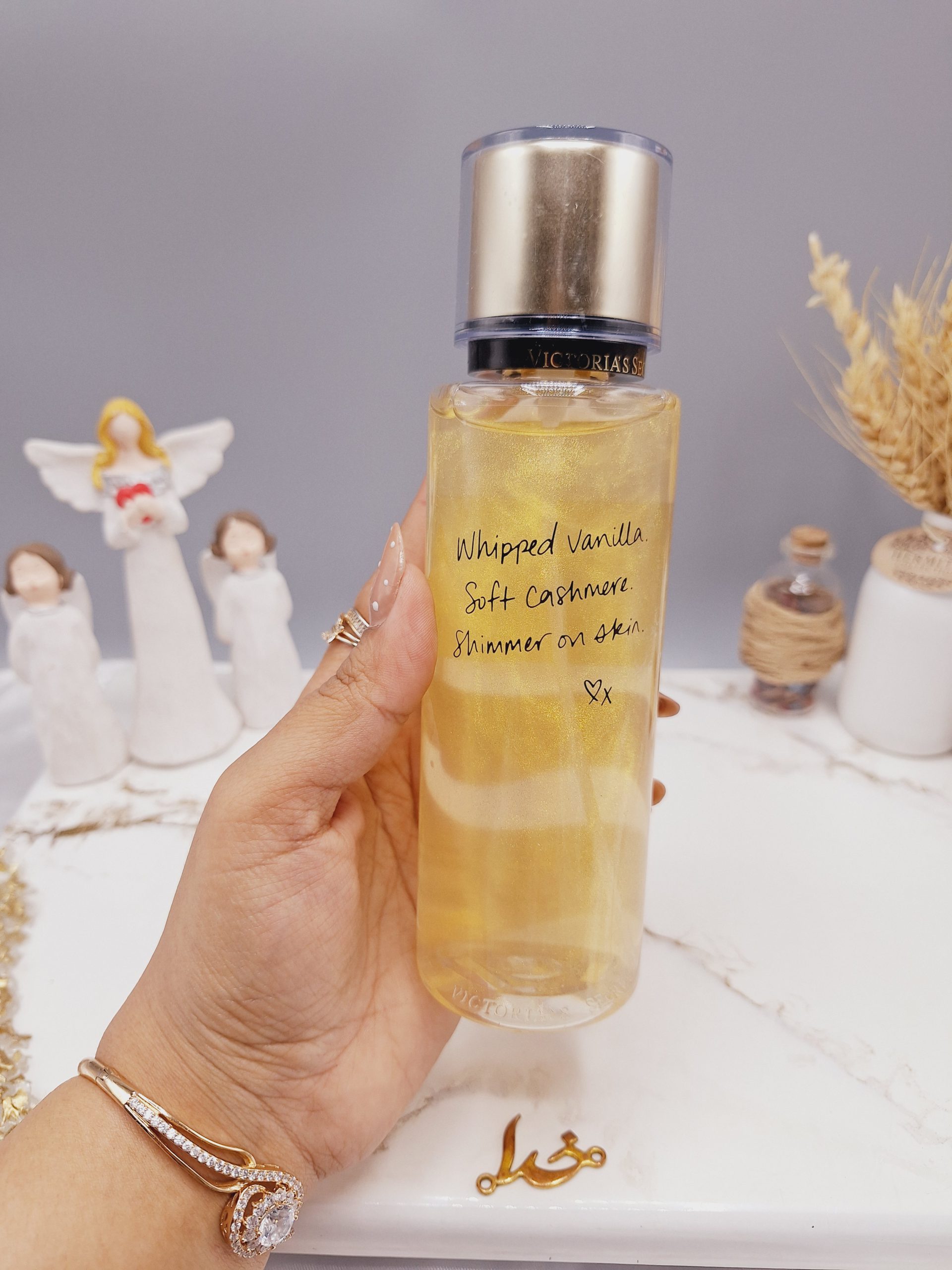 بادی اسپلش 250 ml ویکتوریا سکرت مدل Bare Vanilla Shimmer اورجینال با رایحه بی نظیر وانیل علاوه بر خوشبو کردن بدن با جلوه ای براق و شیمری ظاهری خیره کننده و جذاب را بر روی پوست ایجاد می کند. این محصول را می توان به عنوان عطر روزانه اصلی یا مکمل عطر و ادکلن خود مورد استفاده قرار دهید.