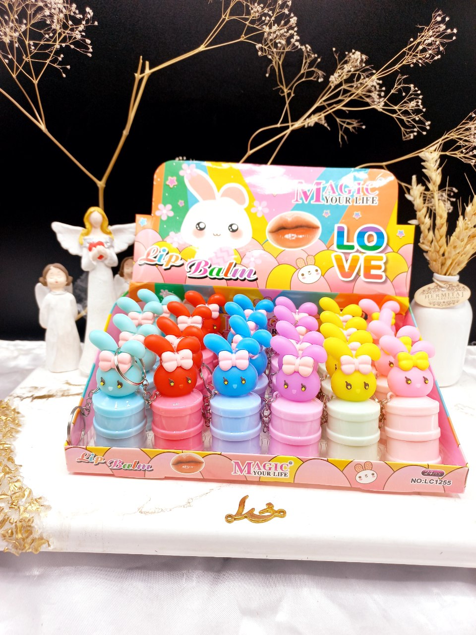 بالم لب یا همان چرب لب یکی از محصولات مراقبتی لب است که از هر آسیبی به لب ها جلوگیری کرده و بافت آن را سالم نگاه می دارد.معمولا بالم لب ها از موم عسل و ویتامین های مخصوص لب ساخته می شود به همین خاطر یک ویتامینه لب است و نیاز های پوست لب را کاملا رفع می کند.بالم لب میوه ای مجیک طرح خرگوش لب ها را نرم کرده، خشکی لب را از بین می برد،از پوسته شدن لب جلو گیری می کند و به علت داشتن ضد آفتاب مخصوص لب از تیره شدن آن جلوگیری نموده و لب ها را روشن و با طراوت می کند.