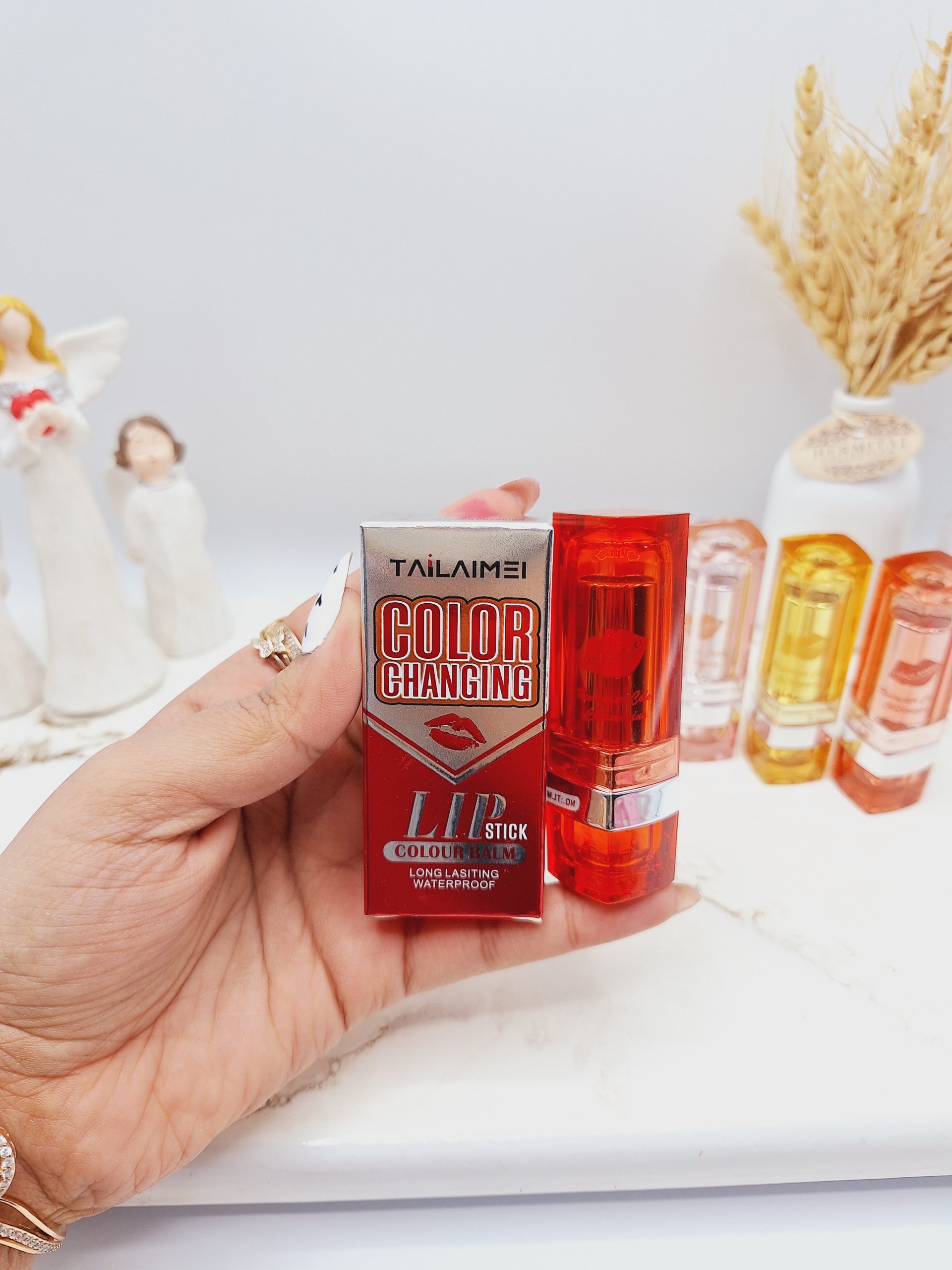 در 4 شماره . ضد آب . رنگ بسیار طبیعی . مناسب برای محیط اداری و دانشگاه دارای رنگ صورتی بسیار ملایم و قرمز بسیار کمرنگ ویتامینه و مرطوب کننده پوست لب ماندگاری بالا بسیار سبک و بدون پوست پوست شدن لب . برند تایلامی (tailaimei)