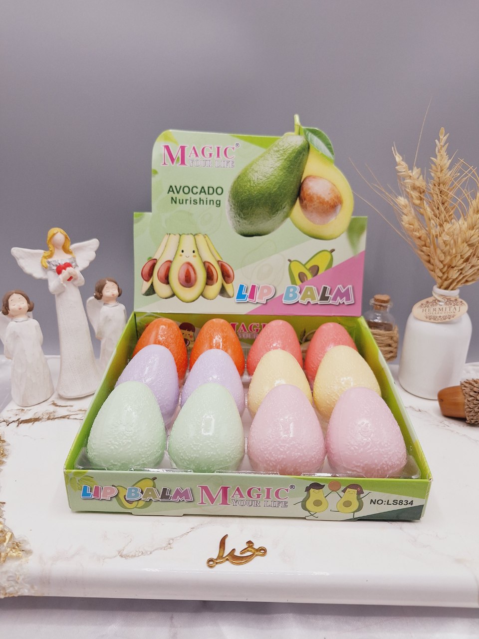 بالم لب ها انواع مختلفی هستند از جمله بالم لب های فانتزی رنگی آووکادو که در عین حال که نرم کننده لب و محافظت کننده لب هستند برای تزئین میز ارایشی نیز استفاده میگردند با فرا رسیدن فصل پاییز و زمستان همواره یکی از مشکلات ما از بین رفتن رطوبت پوست بدن و خشک شدن تدریجی آن میباشد ،که راه های مختلفی برای درمان آن و پیشگیری از خشک شدن پوست لب وجود دارد، که این بالم لب باعث آبرسانی و ویتامینه شدن لب می شود و از ترک خوردگی و خشکی لب جلوگیری میکند ، فاقد رنگ است و بوی خیلی خوبی دارد