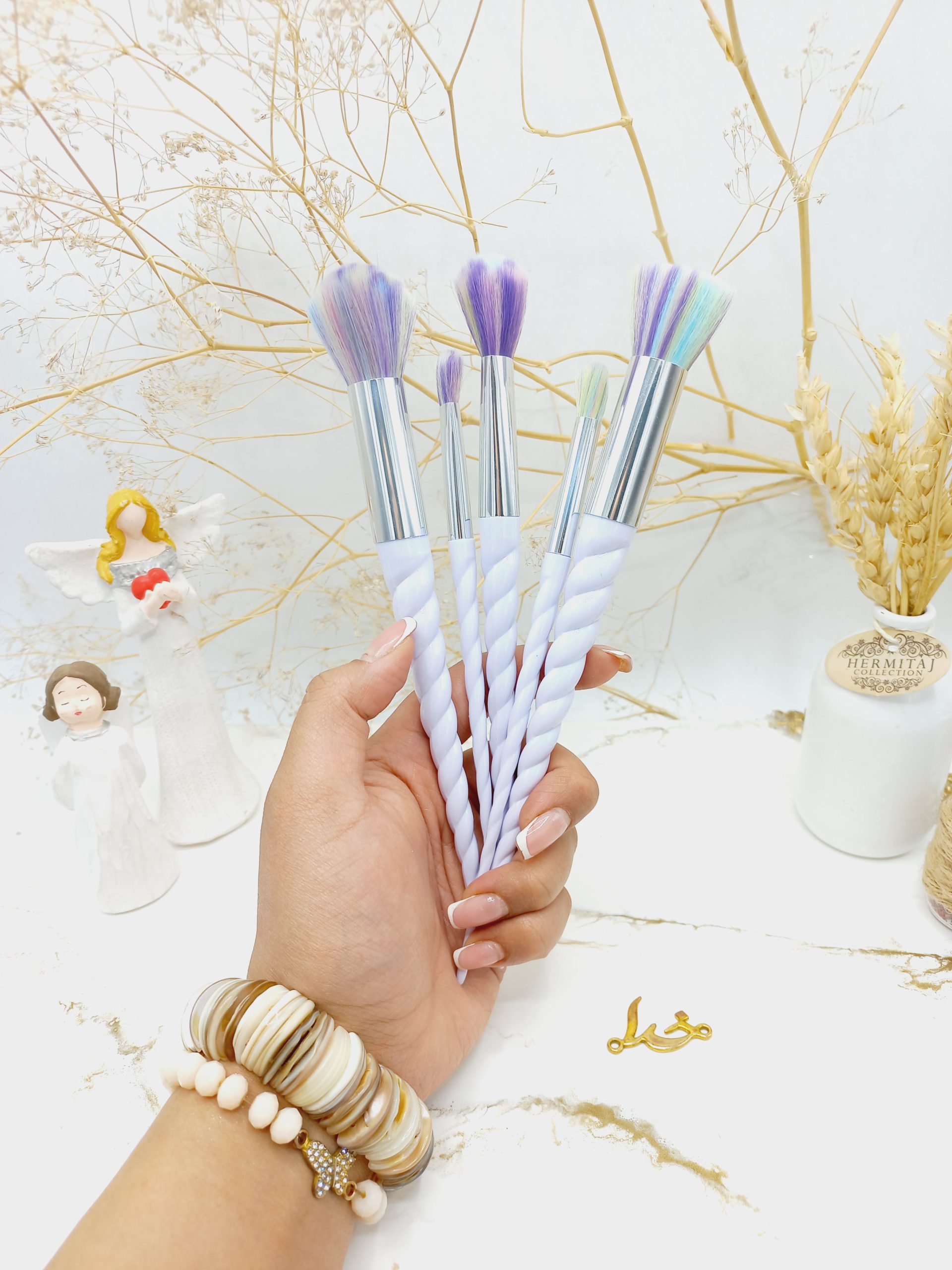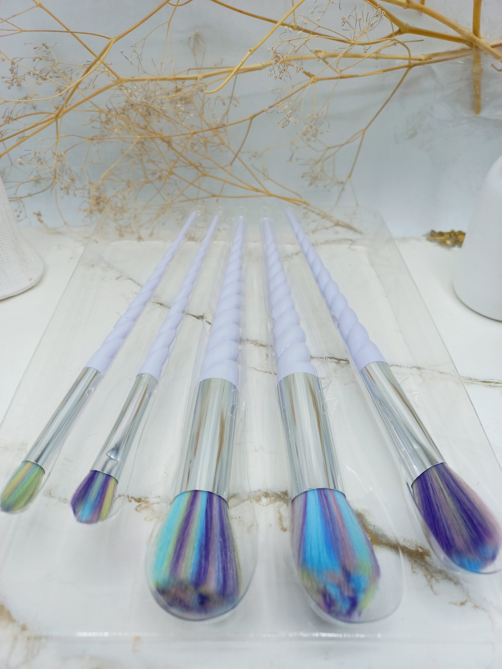 این ست براش شامل ۵ عدد براش و آینه در درب محصول است که هرکدام کاربرد خاص خود را دارد. براشهای بزرگتر که موهایی پر پشت، بلند و نرم دارند، به راحتی لوازم آرایش پودری را روی پوست صورت پخش میکنند. اگر از این براش برای پخش پنکیک و رژ گونه یا پودرهای فیکس و بیک استفاده کنید نتیجه نهایی آرایش شما خیلی طبیعی و زیبا خواهد شد. ۳ عدد براشهای کوچک مخصوص آرایش چشم میباشند. این ۳ براش شامل یک براش کوچک با موهای زاویه دار میباشد که برای سایه زدن نواحی گوشه چشم و برای خطی کشیدن سایه چشم استفاده میشود. ۲ براش دیگر سر گرد هستند که از براش سر گرد بزرگتر برای محو کردن و ترکیب کردن رنگها استفاده میشود و از براش سرگرد کوچک تر برای انجام ریزکاریهای سایه استفاده میشود.