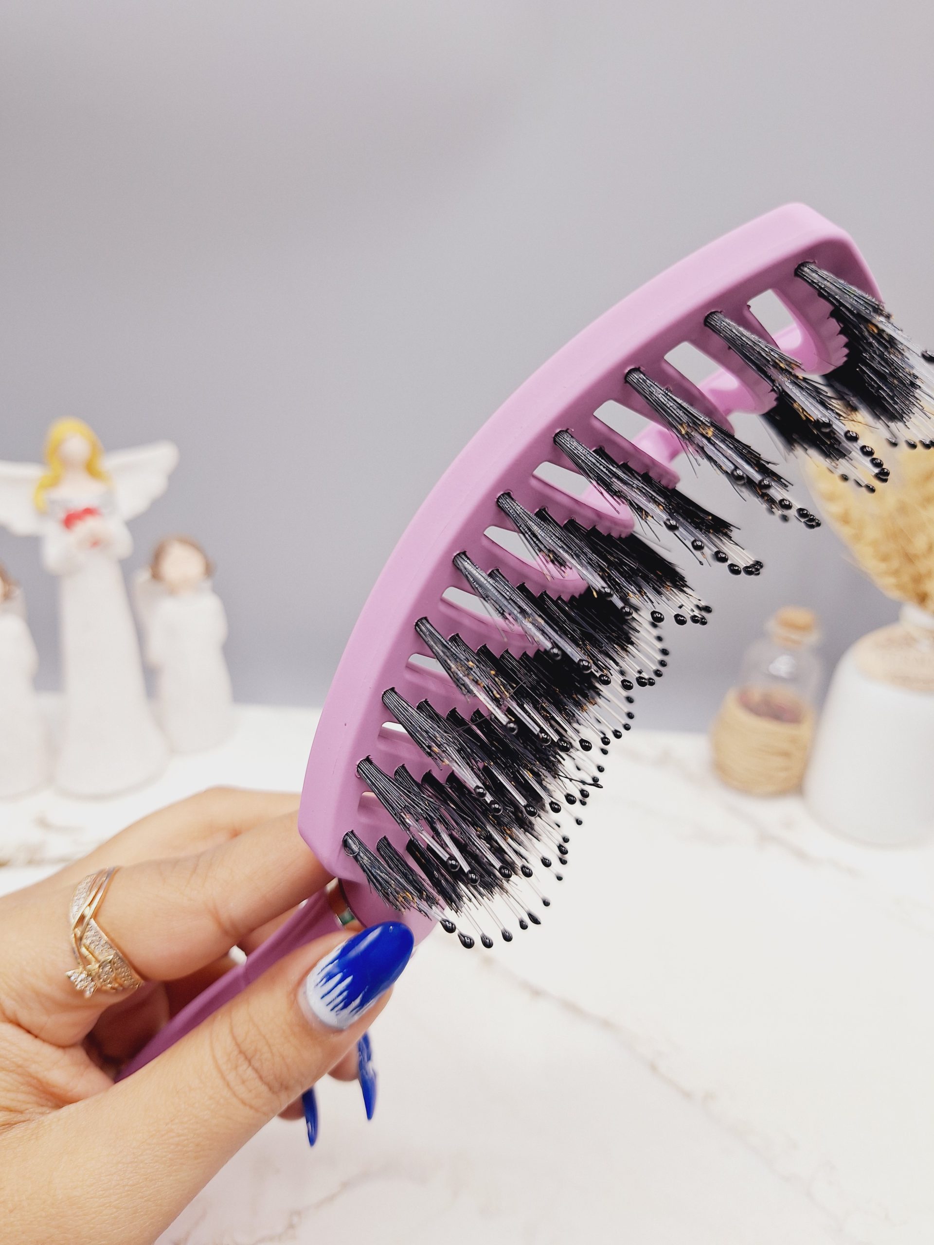 ساخته شده از مواد اولیه بسیار مرغوب تراکم بسیار بالای پرز ها طراحی ساده و بسیار زیبا دسته ماساژوری مقاوم در برابر حرارت سشوار مقاوم در برابر اب مناسب برای موهای اکستنشن مناسب برای مو های نازک طراحی کره مناسب برای باز کردن گره مو