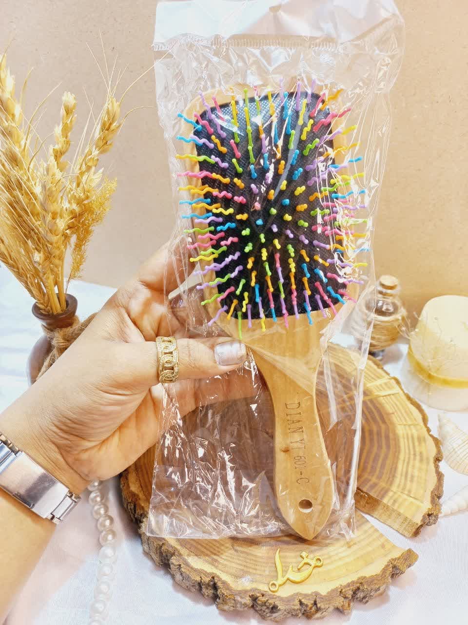 برس مو بامبو دندانه پلاستیکی رنگی مربعی سایز بزرگ دیانی DIAN YI کد 601C