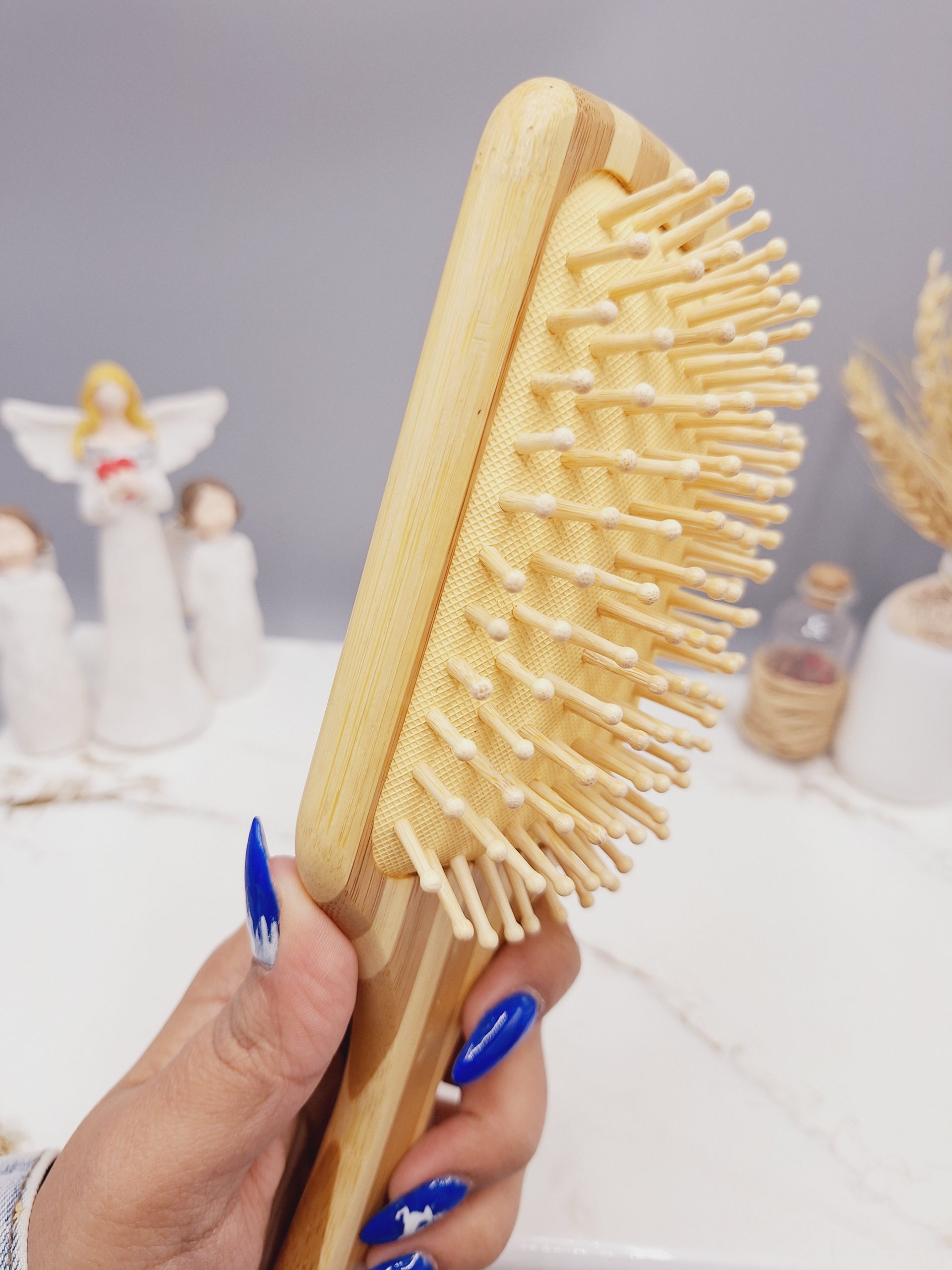 برسهای چوبی با دندانههای طبیعی خود به تقویت مو کمک و چربیهای طبیعی مو را بهطور یکنواخت توزیع میکنند. دندانههای پهن و ملایم چوبی این برسها مانع از شکستن موها در هنگام برسکشی میشوند. همچنین، دندانههای برسهای چوبی بامبو بههیچوجه استاتیک تولید نمیکنند، که این موضوع در شانهها و برسهای دارای دندانههای مصنوعی مشاهده میشود. این محصول به پوست سر آسیب نمیزند و از دوام بالایی برخوردار است. به بهبود گردش خون در سطح پوست کمک میکند و علاوهبراین، طراحی دندانههای برس بهگونهای است که بهراحتی میتوانند ماساژ ملایمی برای پوست و موی سر فراهم کنند.