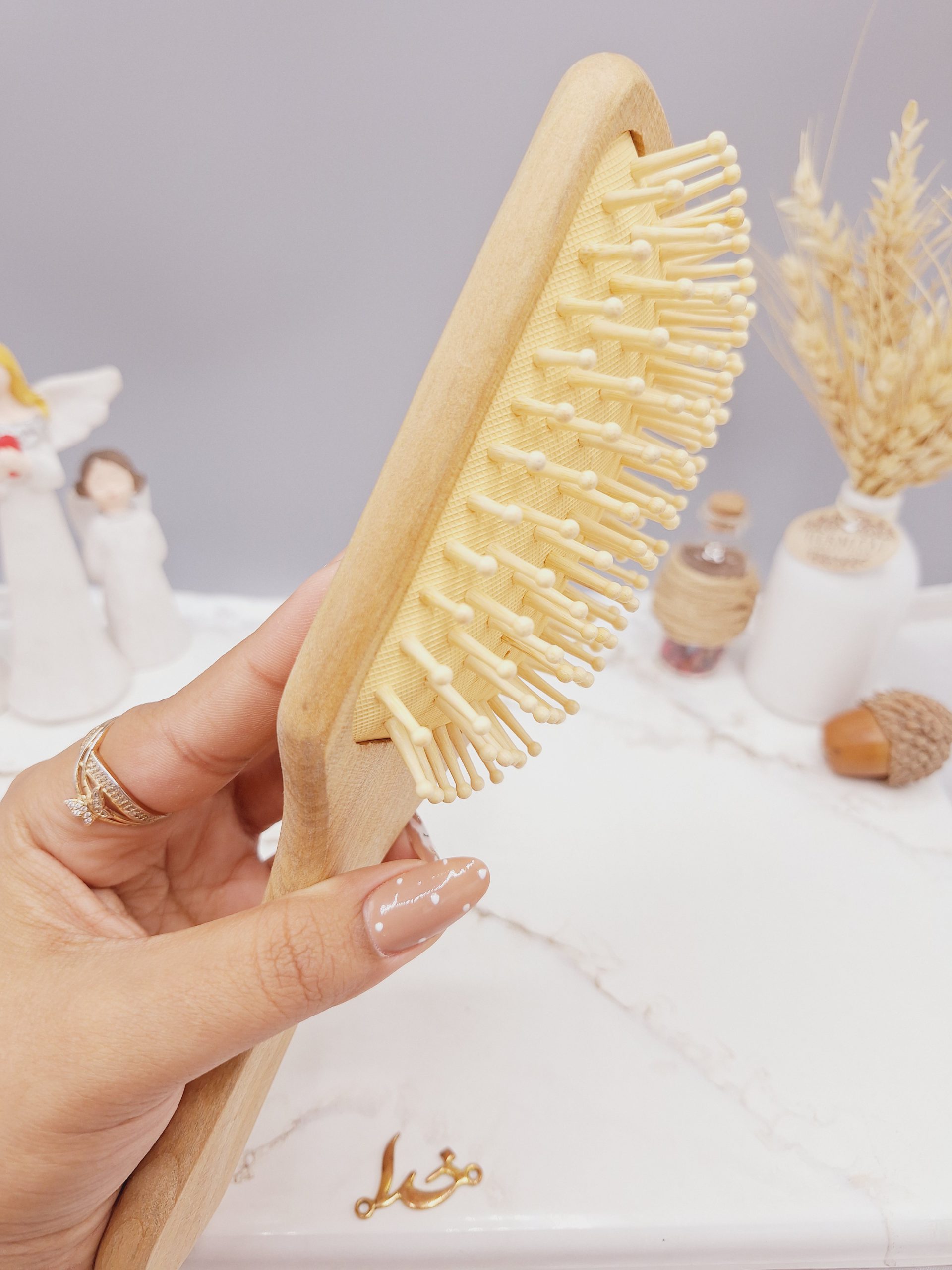 برس مو بامبو چوبی کف کرمی طرح مستطیل بسیار با کیفیت می باشدو دارای دندانه های چوبی می باشد که مناسب برای مصرف خانگی و سالنی است.