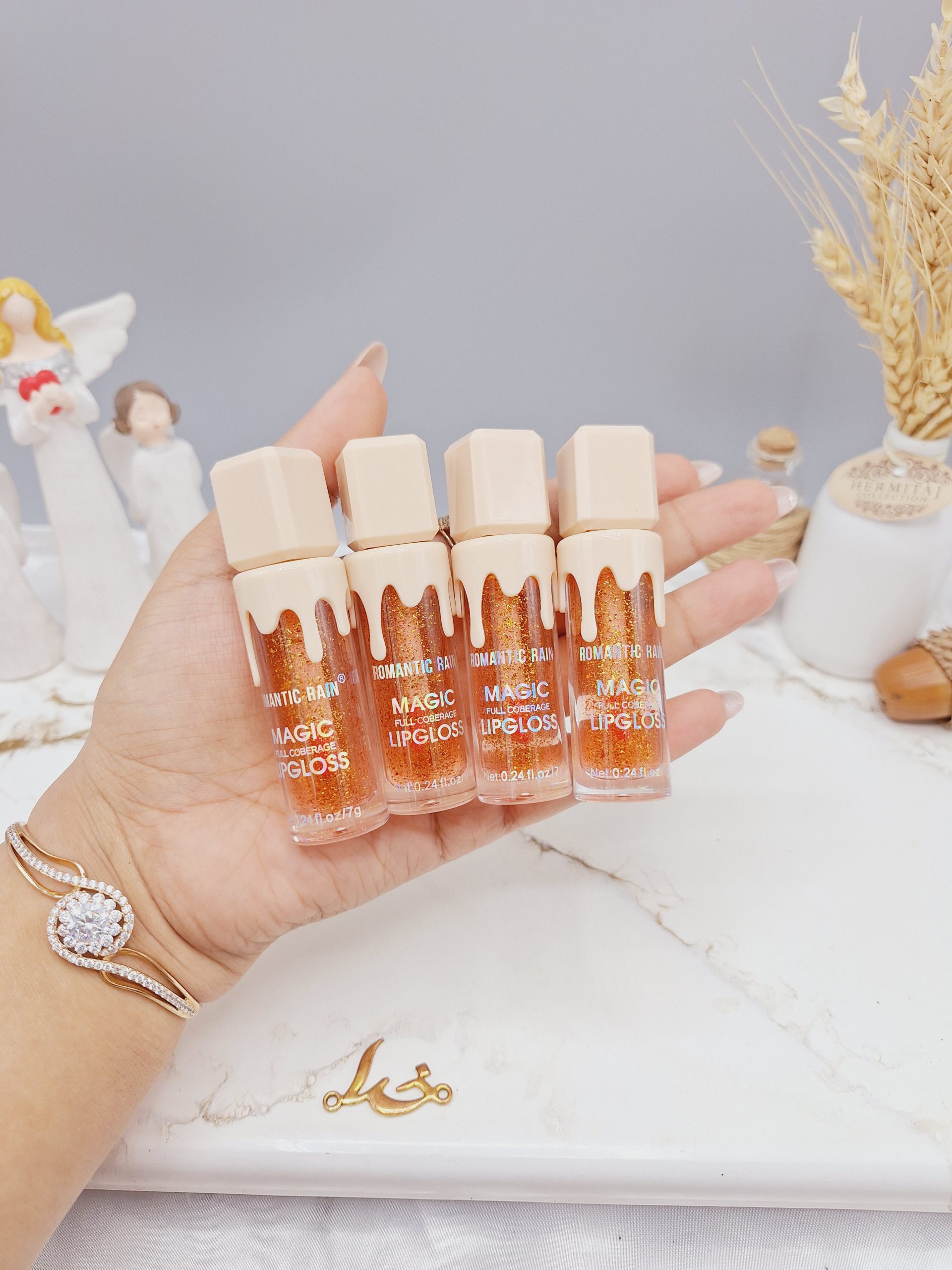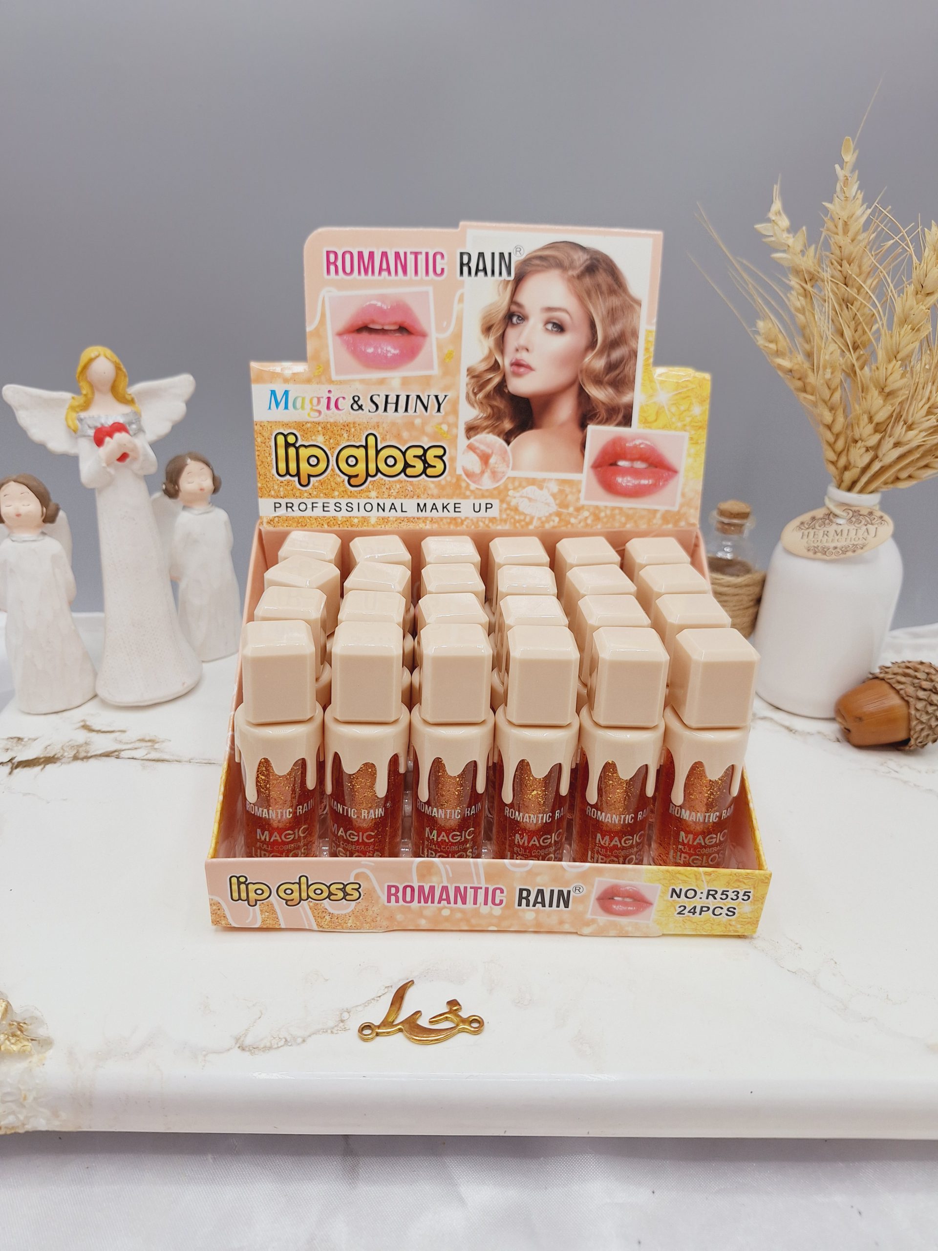 برق لب حرارتی شاین دار رومانتیک راین ROMANTIC RAIN کد R535 در طرح جذاب و فانتزی و دارای شاین عالی روی لب می باشد و مناسب تغییر رنگ بر اساس دمای بدن ( صورتی ) و دارای رایحه عالی می باشد.