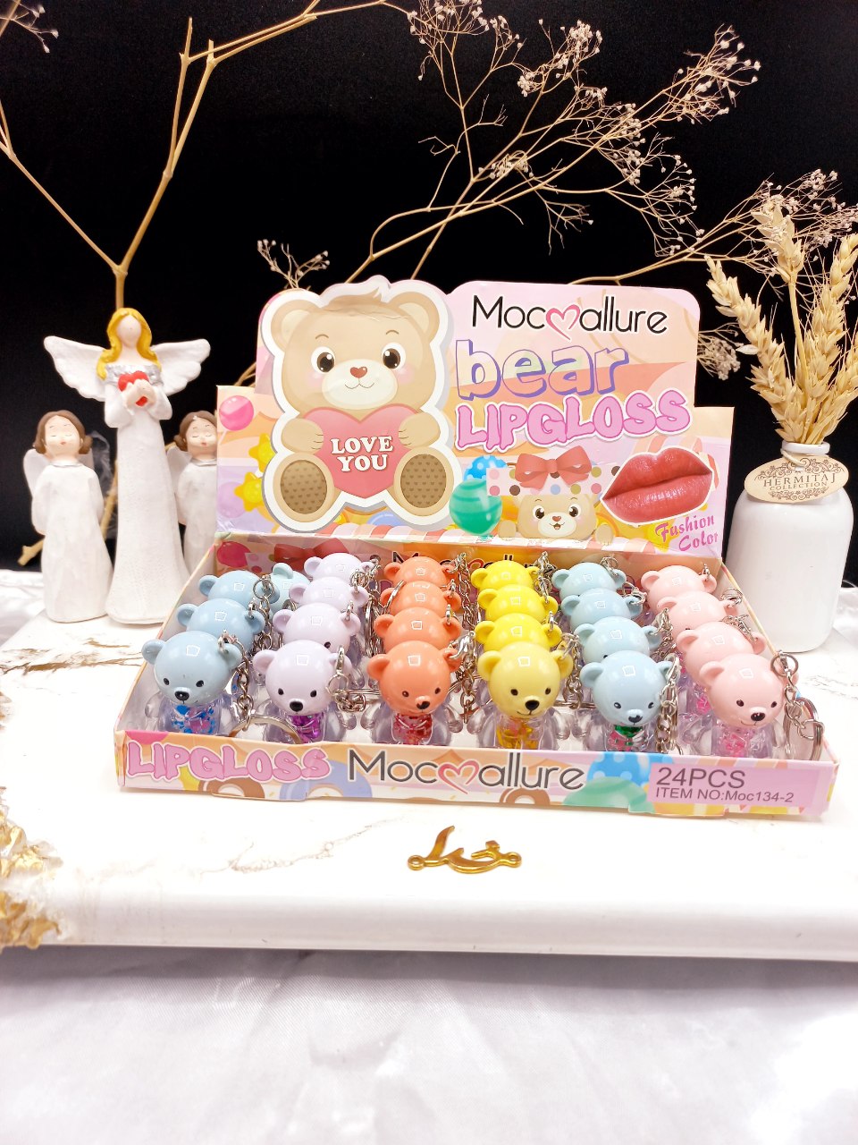 برق لب فانتزی، یک عدد لیپ گلاس حرارتی تشکیل شده که بعد استفاده با حرارت لب، رنگ صورتی ملایمی به لب ها می دهد. برق لب را می توان به تنهایی یا روی رژ استفاده کرد و به جذابیت لبها افزود. برق لب خرسی آویزدار موکالره Mocallure کد 1342 لیپ گلاس هدی موجی مدل پری دریایی بسیار نرم، روان و با کیفیت بوده و با ماندگاری طولانی است.