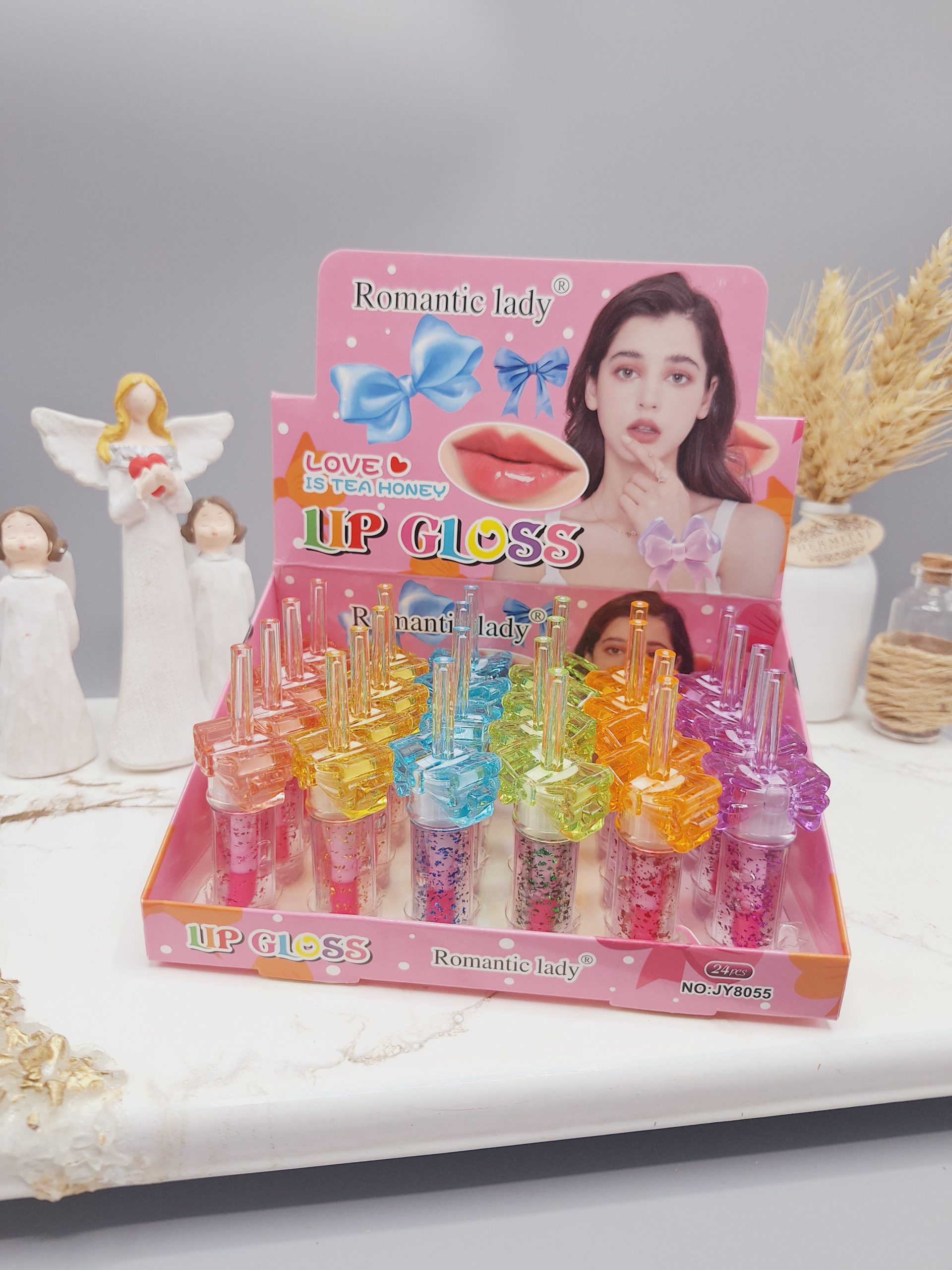 برق لب شاین دار زیبا طرح پاپیون برند Romantic lady برند NO:JY8055