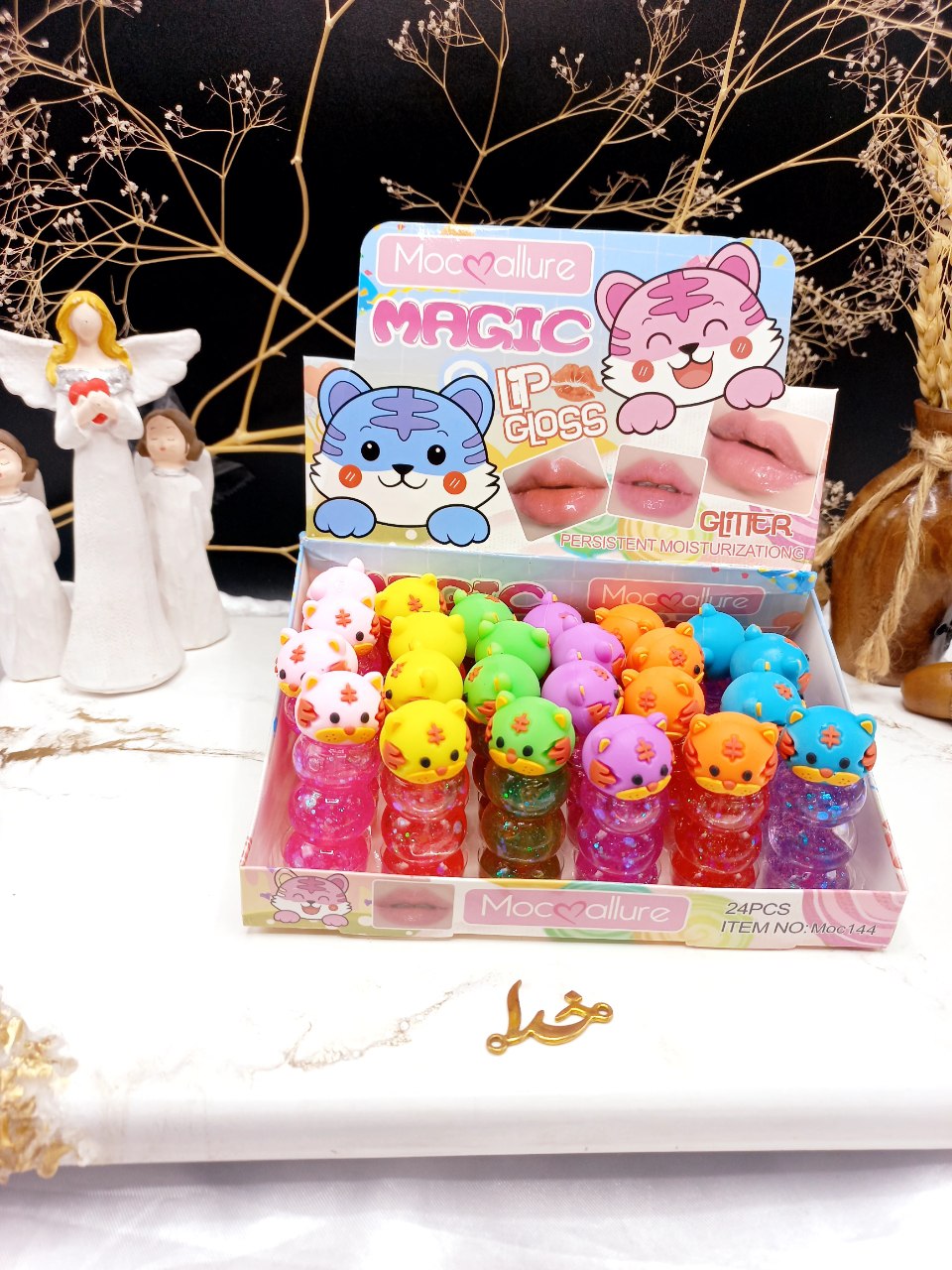 برق لب فانتزی طرح ببر برند موکالر Mocallure کد Moc144 با طراحی فانتزی ارائه شده است . این محصول ضد آب، نرم کننده و براق کننده لب بوده و ماندگاری عالی نیز دارد.