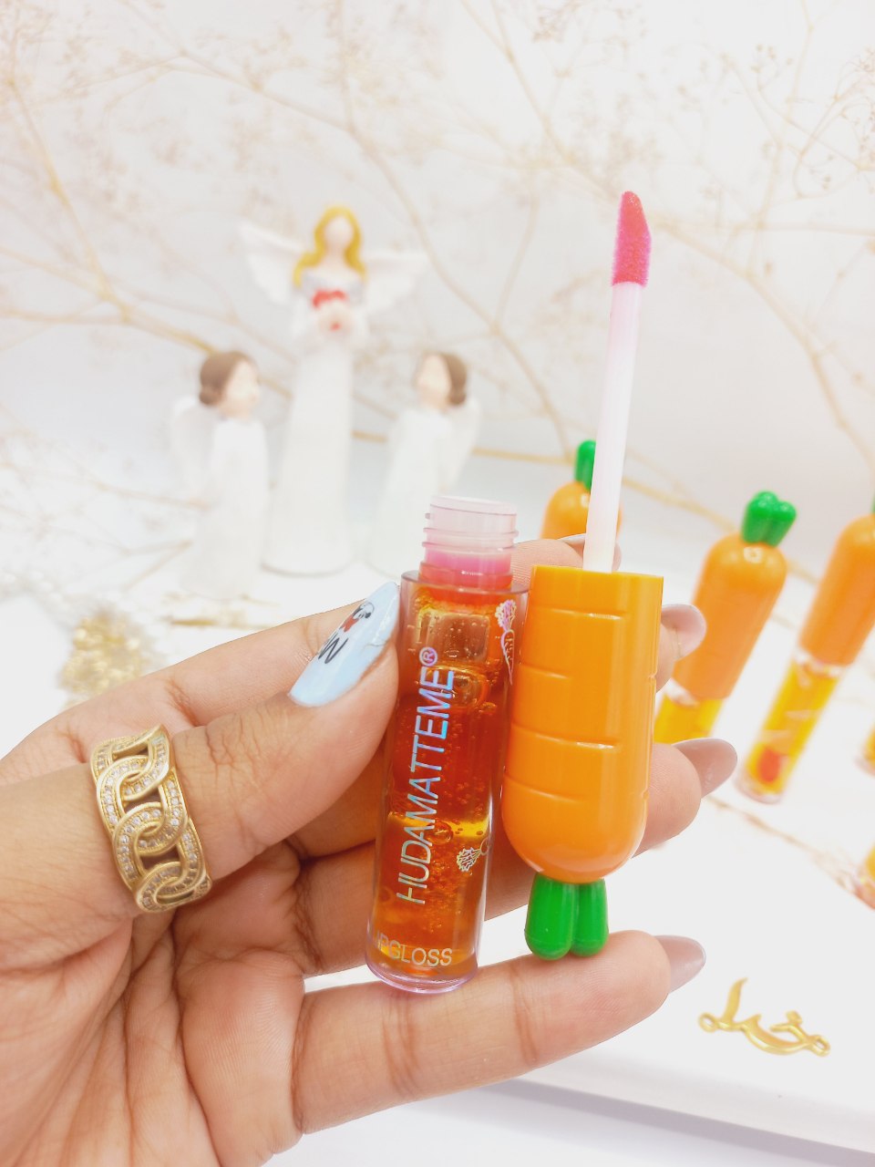 برق لب و لیپ گلاس درب هویج هدا مات می HUDA MATTE ME کد X050 دارای 6 رنگ و رایحه خوشبو می باشد، این محصول نرم کننده پوست لب است و با توجه به دمای بدن هر فرد متفاوت می باشد.