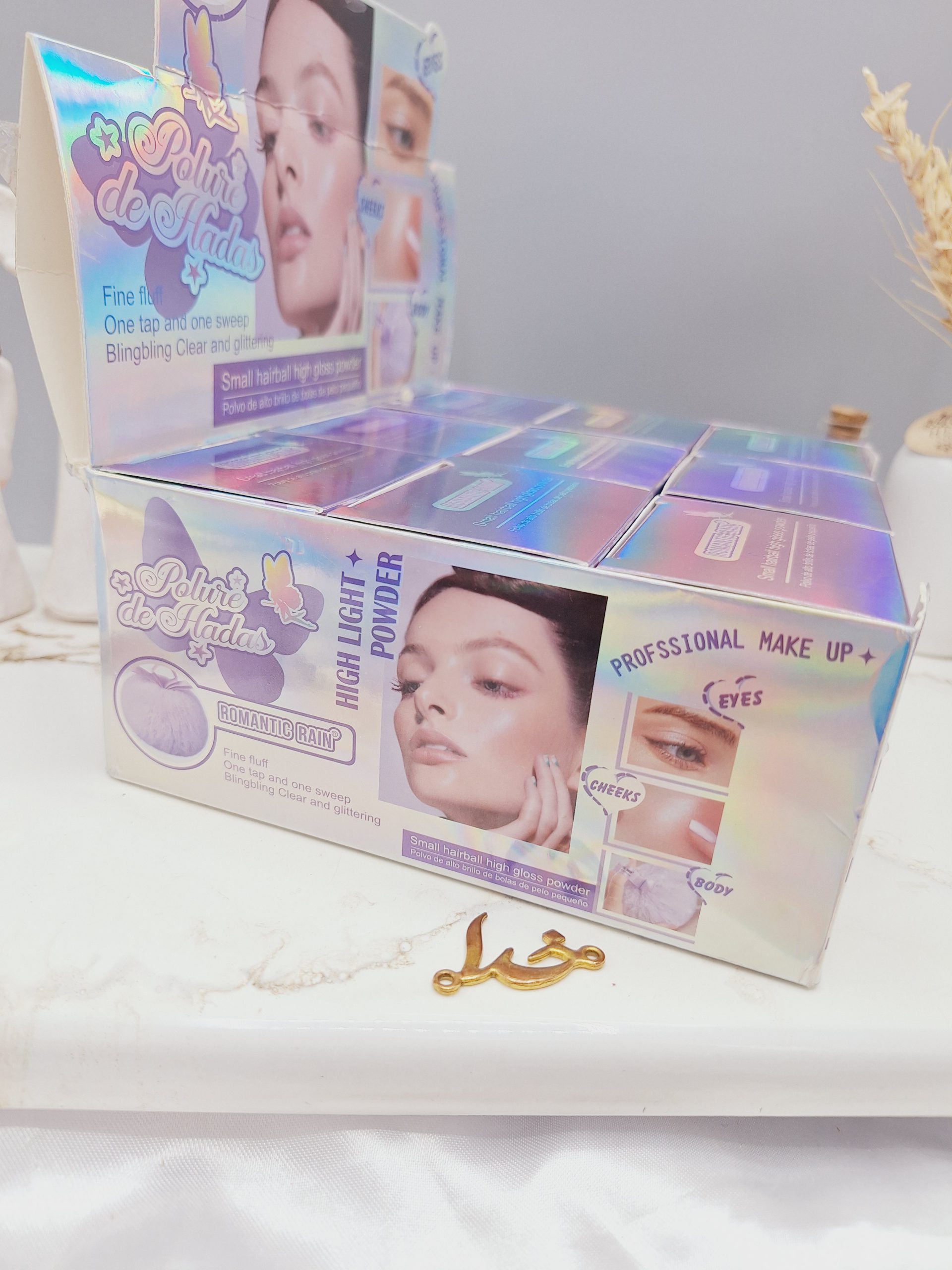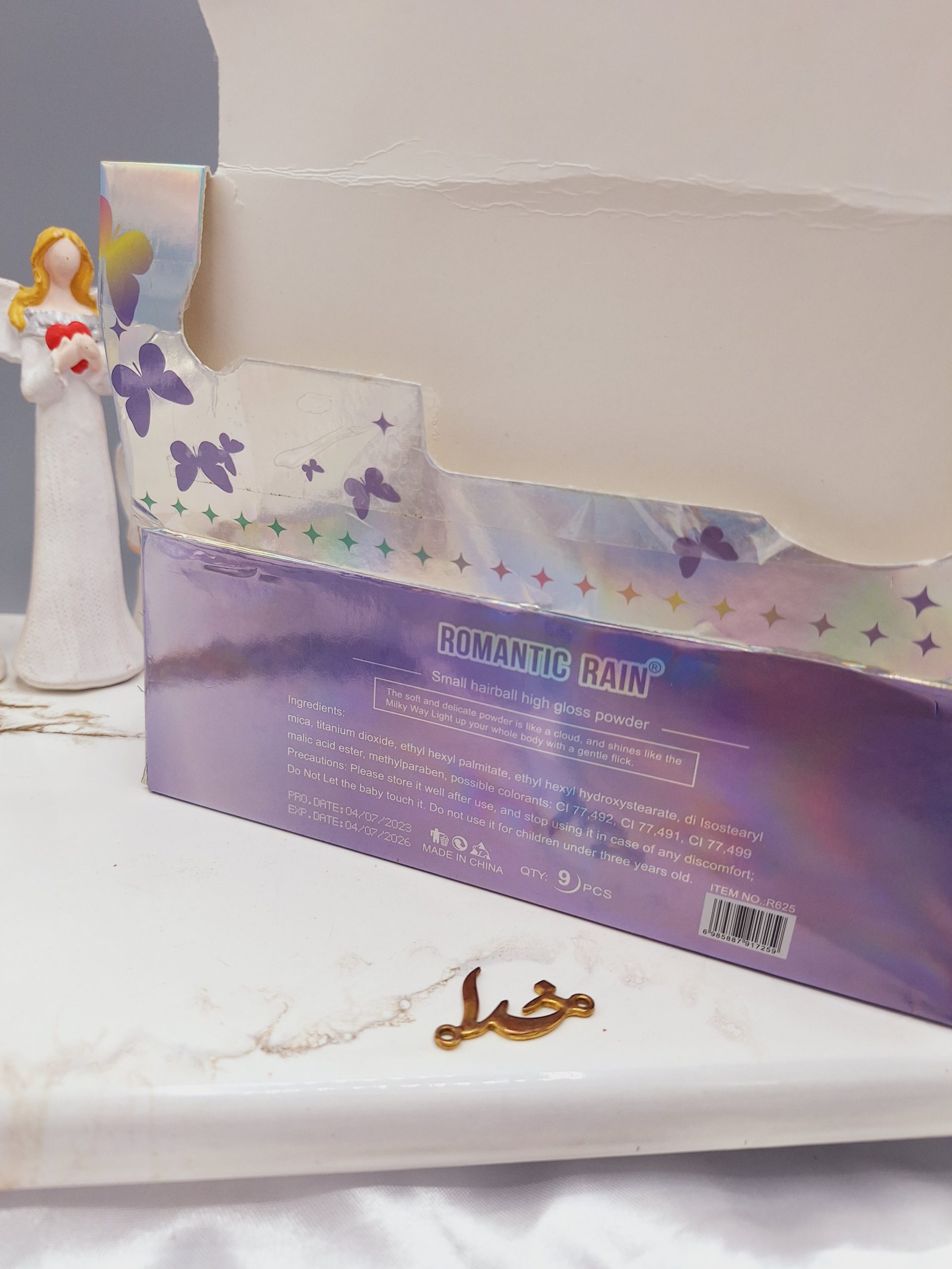 بمب هایلایتر شاین دار پنبه ای برای بدن و صورت برند ROMANTIC RAIN کد R625 دارای پیگمنت عالی است. بمب هایلایتر شاین دار پنبه ای برای بدن و صورت برند ROMANTIC RAIN کد R625 جهت براق کردن پوست بخصوص گونه ها استفاده می شود و شاین جذابی دارد.هایلایتر رومانتیک رین کیفیت و ماندگاری زیادی دار و به راحتی قابل سفارش است.
