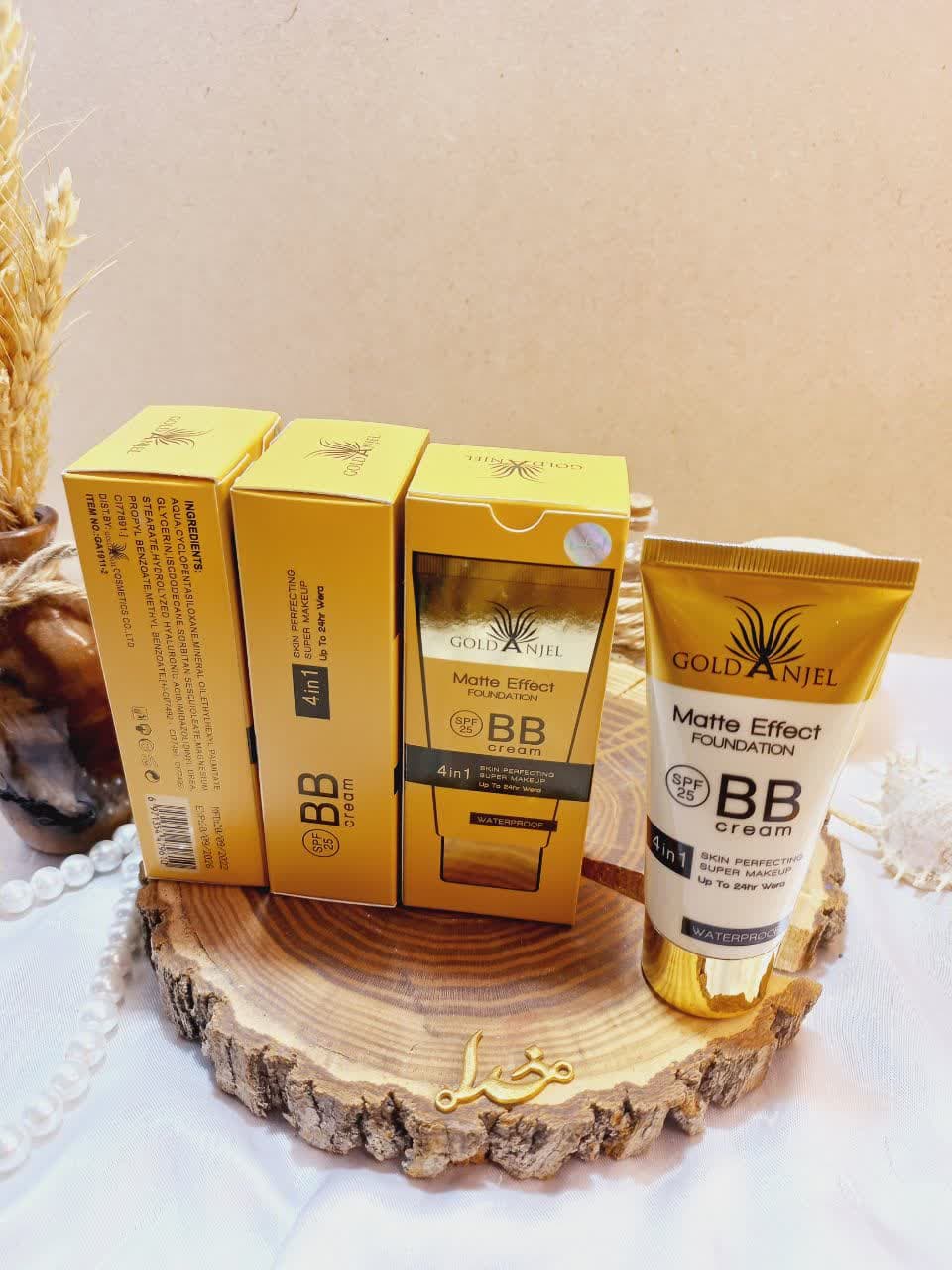 کرمپودر تیوپی گلد آنجل BB چند کاره، در واقع ترکیبی از چندمحصول در یک محصول است . تلفیقی از مرطوب کننده، پرایمر ، ضدآفتاب، کرمپودر و کانسیلر میباشد. مات شدن پوست صورت بهترین حالتی است که می‌تواند چهره یک خانم داشته باشد ترکیبات استفاده‌شده در کرم پودر برند گلد انجل ، این ویژگی را به‌خوبی دارد و می‌تواند بعد از استفاده، حالتی مات بر روی چهره ایجاد کند. این محصول دارای بافت مخملی است و حاوی پودر مخصوص تنفس پوست میباشد و با حذف چربی‌های پوست باعث نرمی و لطافت پوست میشود. این کرم دارای خاصیت ضد لک و ضد چروک و ضد حساسیت میباشد و با پوشانندگی بالا پوشاننده اثرات جراحی و آکنه و تتو و غیره میباشد. این محصول با یک پوشش فوق‌العاده با ماندگاری بالا ویژه مصرف روزانه خانمهای خوش سلیقه میباشد. کرمپودر همه کاره گلد آنجل بدون آسیب رساندن به پوست و ویژه هر نوع پوستی طراحی شده است. کرم BB چند کاره اورجینال گلد آنجل کرم گلد آنجل چند کاره میباشد مرطوب کننده پوست،حاوی پرایمر و 25 درصد ضدآفتاب خواص ضدلک و چروک پوشش دهی فوق‌العاد ویژه مصرف روزانه بدون آسیب رساندن به پوست ویژه هر نوع پوستی تاریخ انقضا تا 2027 دارای ۳ شماره رنگبندی حجم 40 میل