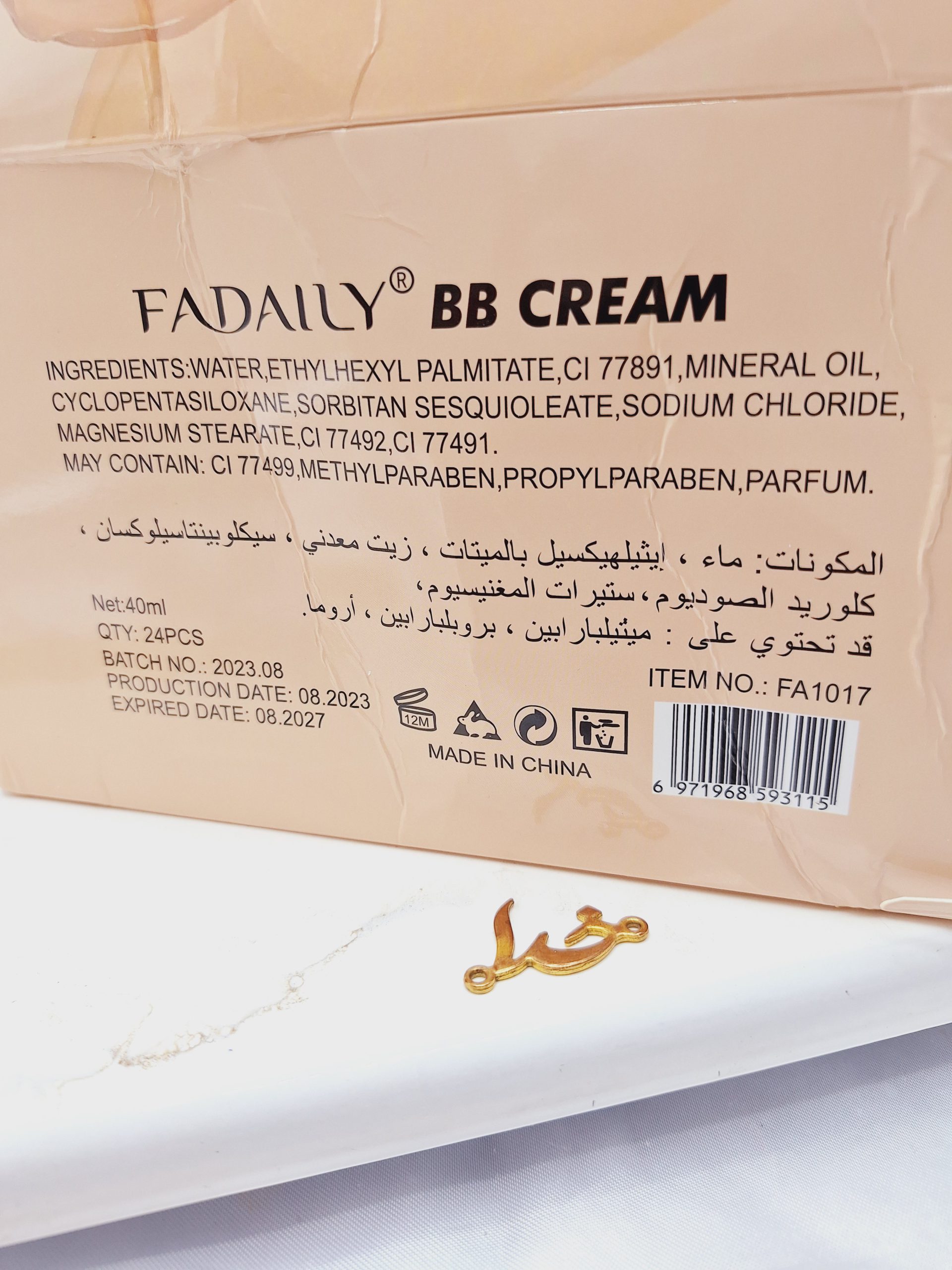 بی بی کرم پودر آبرسان و 24ساعته برند FADAILY کد FA1017 پوشانندگی مناسب و متوسطی دارد و رنگ پوست صورت را تعدیل میکند.