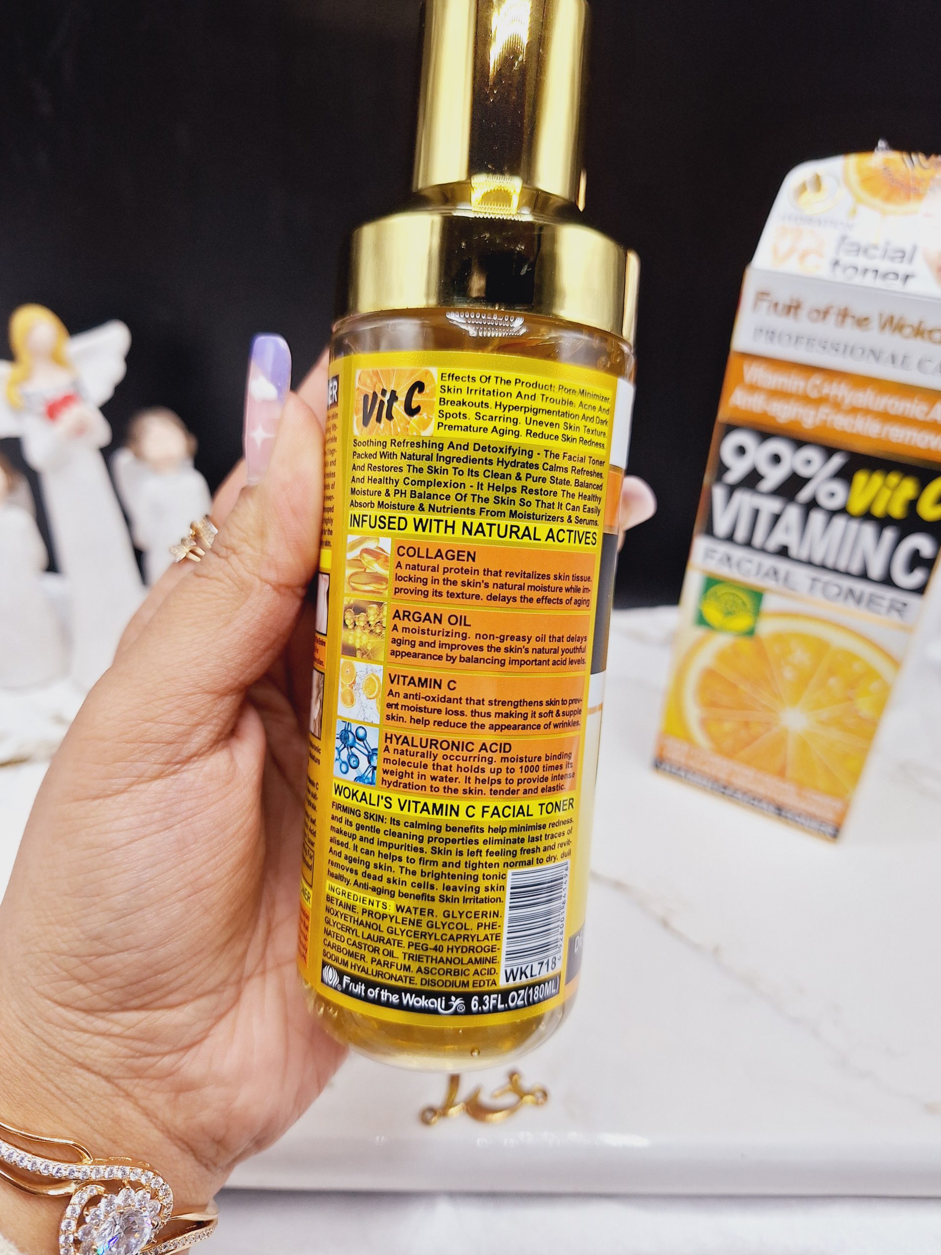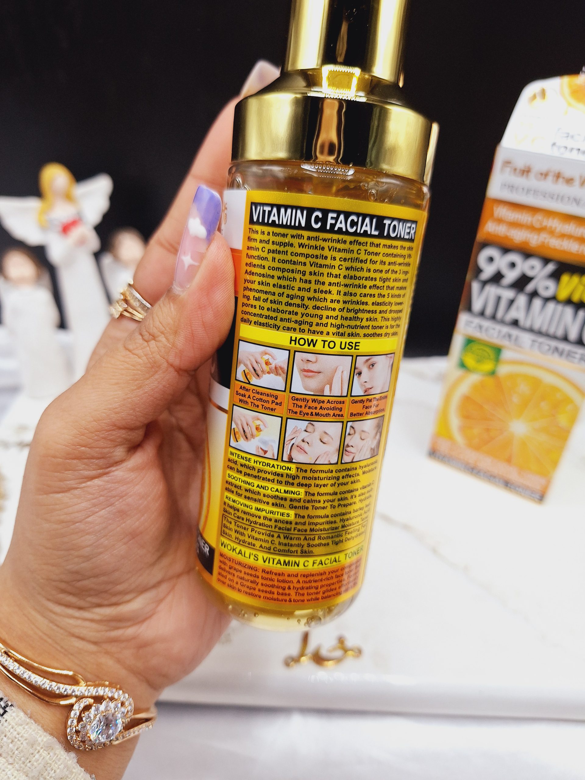 تونر روشن کننده قوی ویتامین سی وکالی Wokali کد WKL718 محلول خالصی است که ضمن پاک کردن آلودگی ها و آرایش از روی پوست، بدون هیچ سوزشی پوست های حساس را تسکین داده و تغذیه می کند.