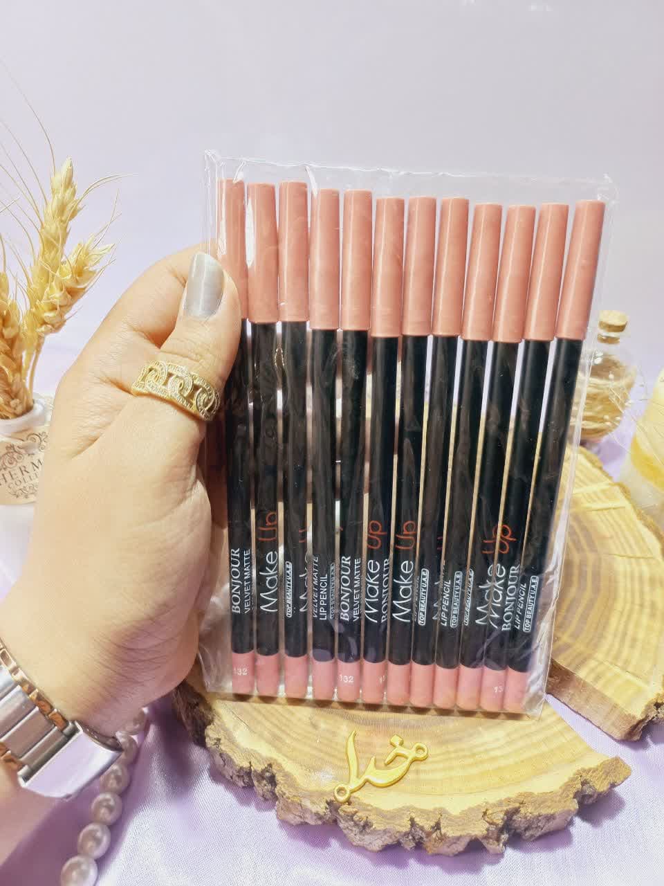 ناموجود خط لب مدادی با کیفیت میکاپ ولوت مات درب کرمی بسته 12 عددی