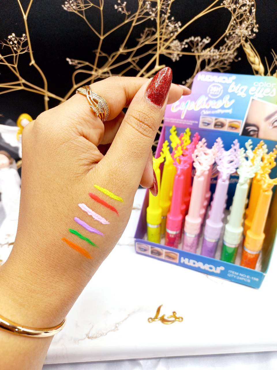 • خط چشم رنگی هدی موجی رنگبندی شاد و نئونی دارد که قابل استفاده برای انواع رنگ چشم می باشد و زیبایی چشمان شما رو دو چندان می کند