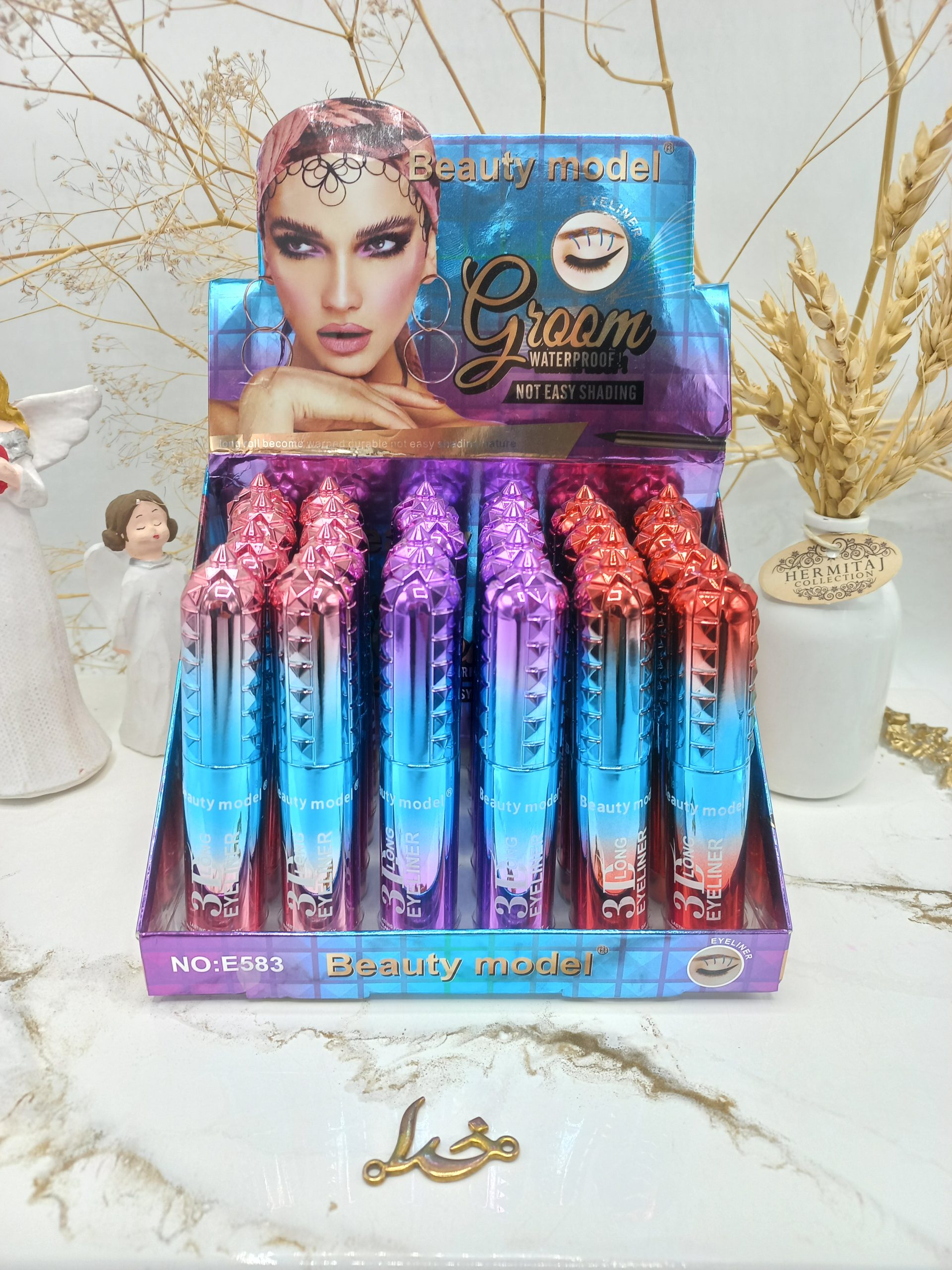 خط چشم نقطه عطف چهره و آرایش است و استفاده از خط چشم و کشیدن آن بر روی پلک زیبایی چهره و گیرایی چشم ها را دوچندان می نماید. خط چشم گاش ضد حساسیت بوده و هرگز موجب قرمزی و یا سوزش و خارش چشم شما نمی گردد. خط چشم ضد آب بیوتی مدل Beauty model کد E583 ماندگاری بالایی داشته و استفاده از آن بسیار آسان است و پوششی یکدست و زیبا را برای شما به ارمغان می آورد. رنگ این خط چشم کاملا مشکی و مات است و چشم های شما را به سیاهی شب تیره و زیبا می کند. بافت این خط چشم مایع است و برس آن نیز ماژیکی می باشد و مورد استقبال آرایشگران و اشخاص حرفه ای می باشد.