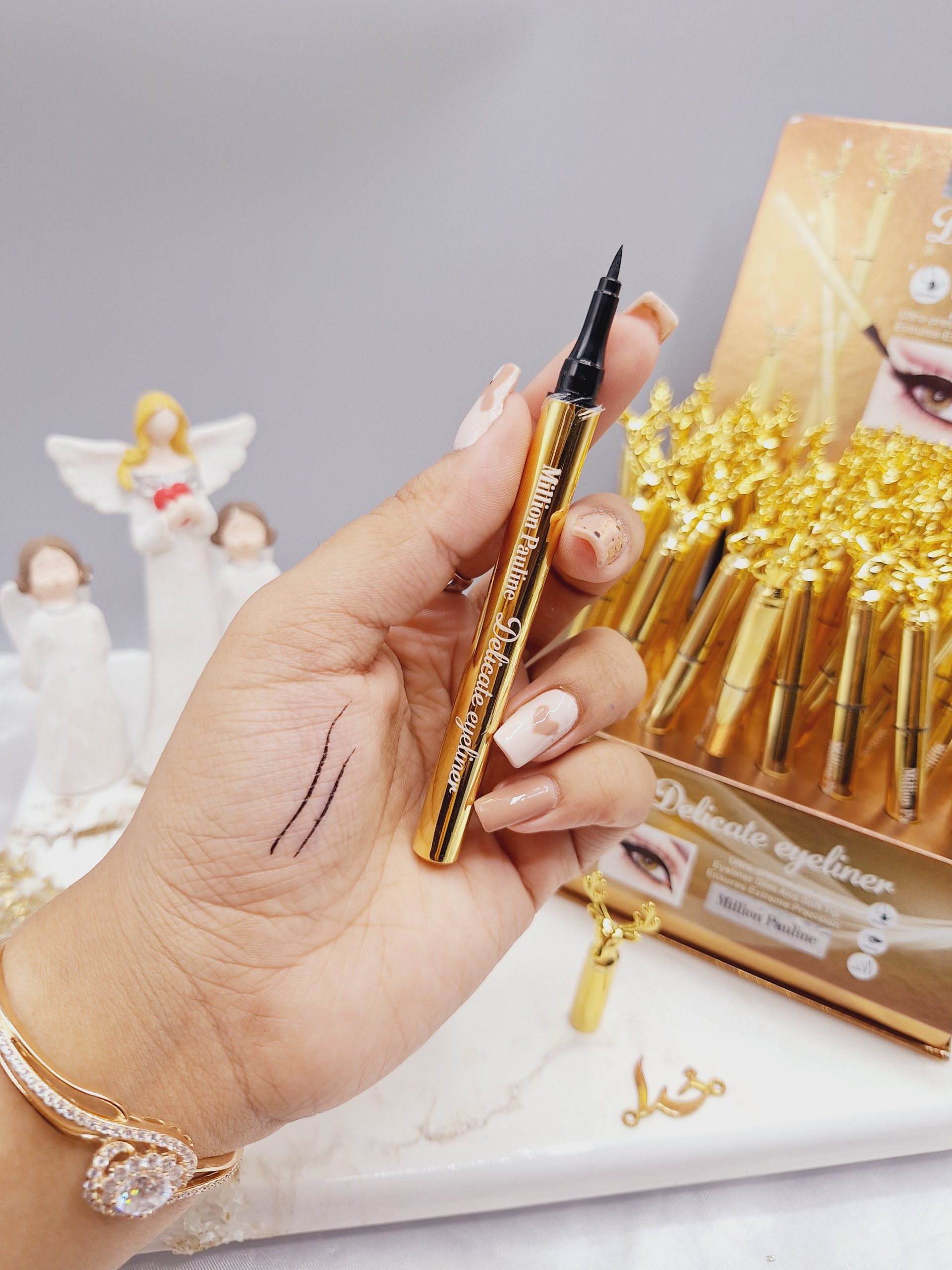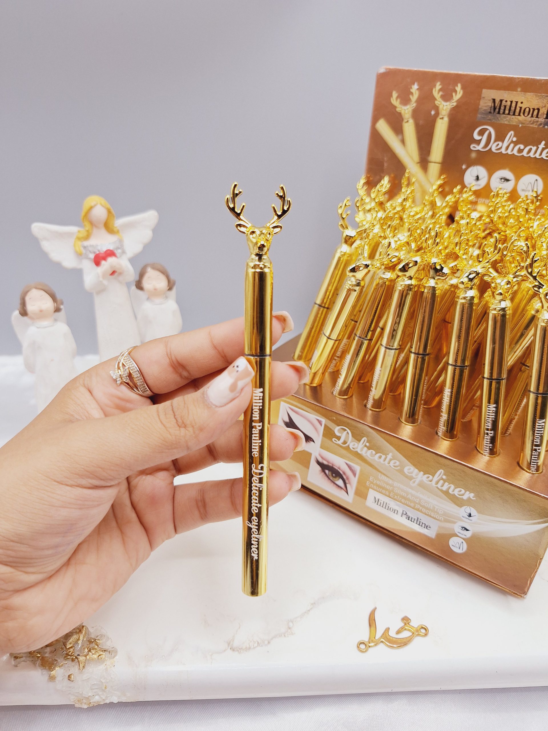 خط چشم ماژیکی ضدآب طرح گوزن برند Million Pauline کد m22-60، در کنار کیفیت بالا ظاهر خیلی جذابی دارد. این مدل خط چشم بیشتر به خاطر ظاهر جذابش فروش میرود اما وبعد از استفاده مشتریان و متوجه کیفیت بالای آن میشدند و مجدد خرید میکردند. این خط چشم ضد آب است و ماندگاری بالایی دارد. چون سر این خط چشم نمدی است، کشیدن خط چشم با آن راحت است. سری نمدی این خط چشم سفت است و ته کشیدن خط چشم راحت کمک میکند.