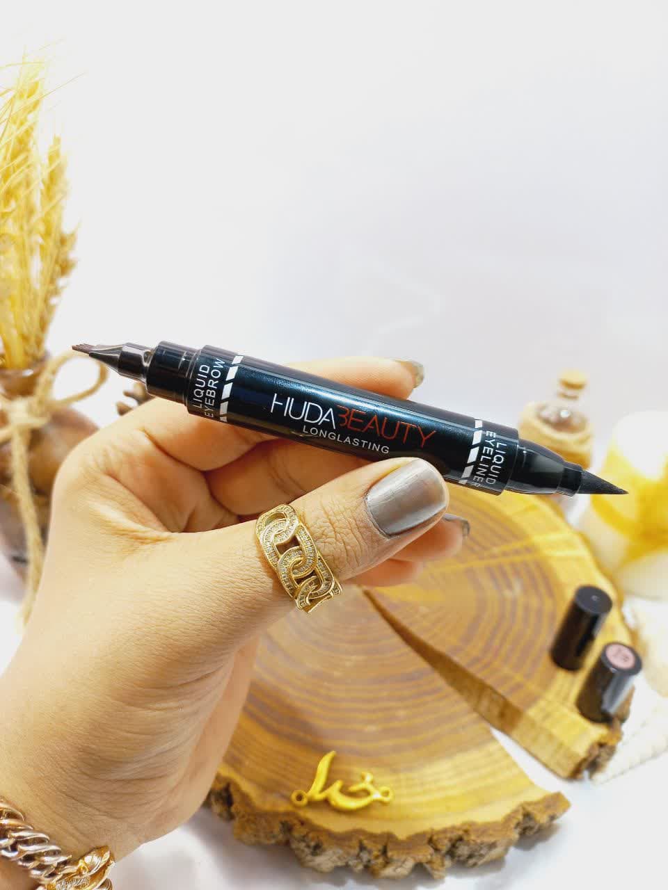 برند هدی بیوتی از برندهای معتبر و پرطرفدار محصولات آرایشی می باشد که با کیفیت بالا و تنوع محصولات بسرعت توانست محبوبیت بسیاری در بین بانوان کسب نماید. از محصولات محبوب برن هدی بیوتی خط چشم و هاشور ابرو دو طرفه هدی بیوتی می باشد که یک سر آن خط چشم ماژیکی با مواد بسیار روان و کاملا مشکی می باشد که خطی مات و یکدست بدون بریدگی را بر روی پلک شما ایجاد می نماید. سر دیگر این محصول یک هاشور ابرو 4 خط قرار دارد که دارای دو رنگ قهوه ای پرکاربرد می باشد و موجب ایجاد جلوه ای پرحجم برای ابروی شما خواهد شد. ماندگاری مواد این محصول بسیار بالا می باشد و شما نگران پاک شدن ان نخواهید بود.